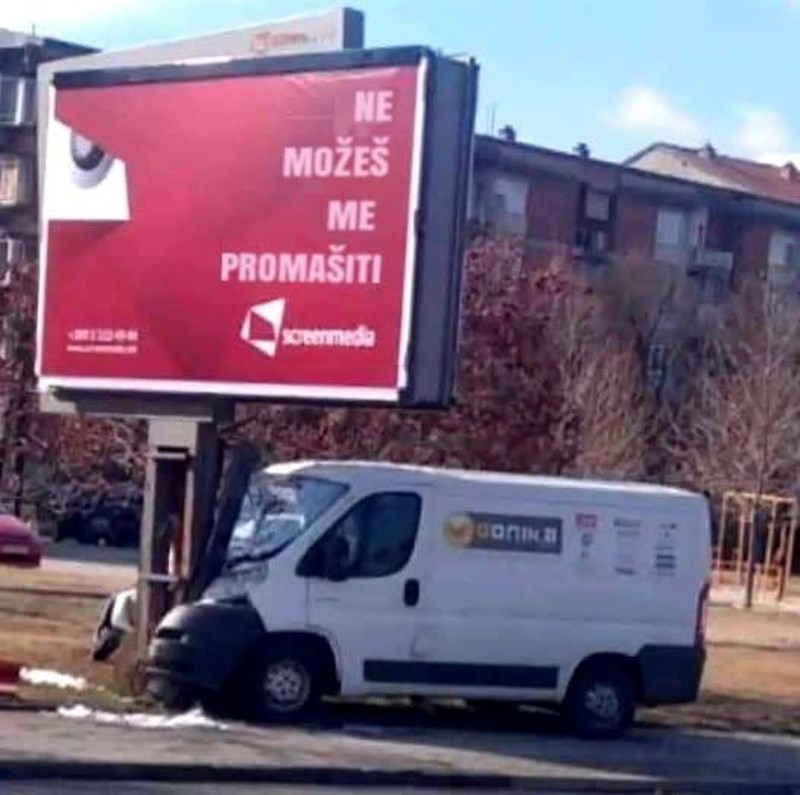 Kombi se zabio u billboard, scena se masovno širi mrežama zbog bizarne slučajnosti