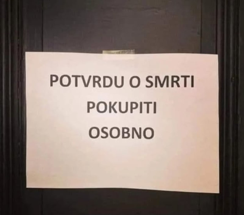 Urnebesni gaf matičnog ureda nasmijao je ljubitelje crnog humora, morate vidjeti