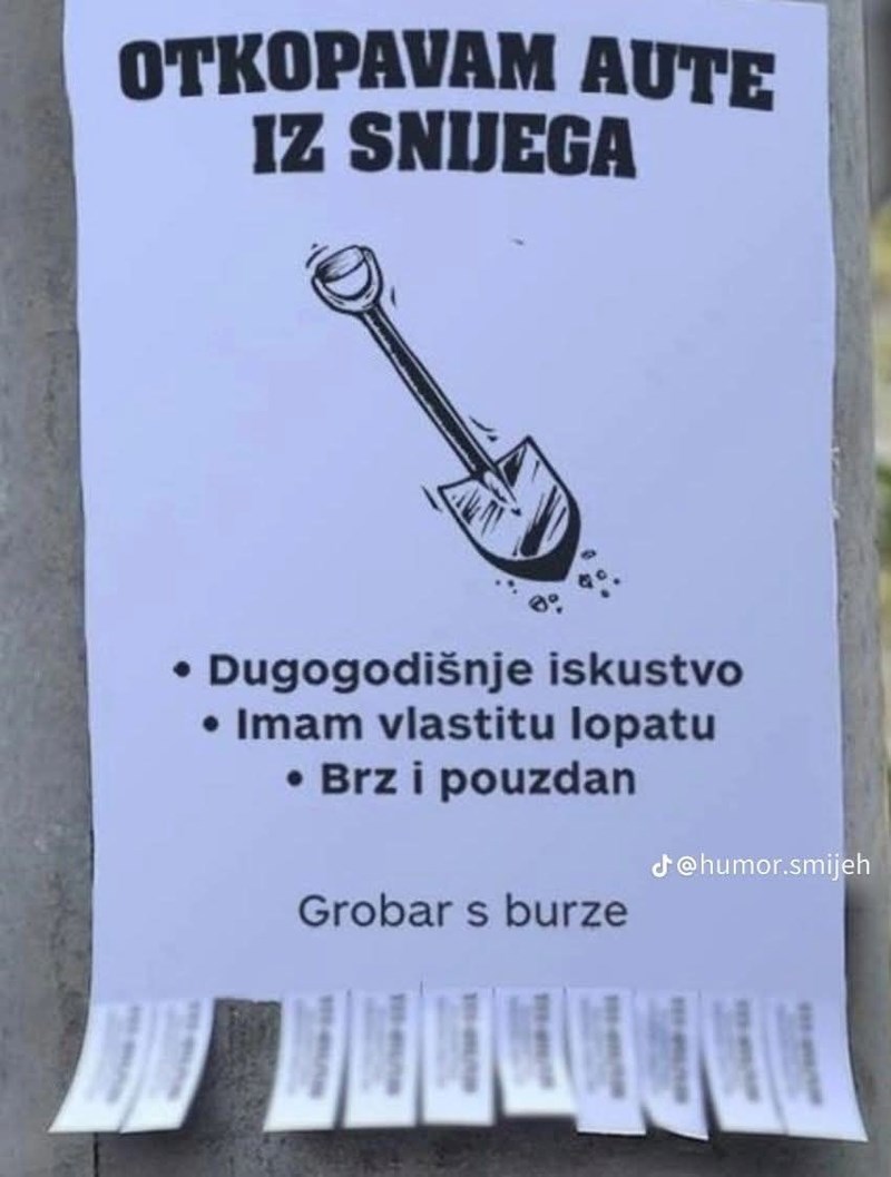 Tip nudi uslugu čišćenja snijega- kada vidite tko stoji u potpisu oglasa, umrijet ćete od smijeha