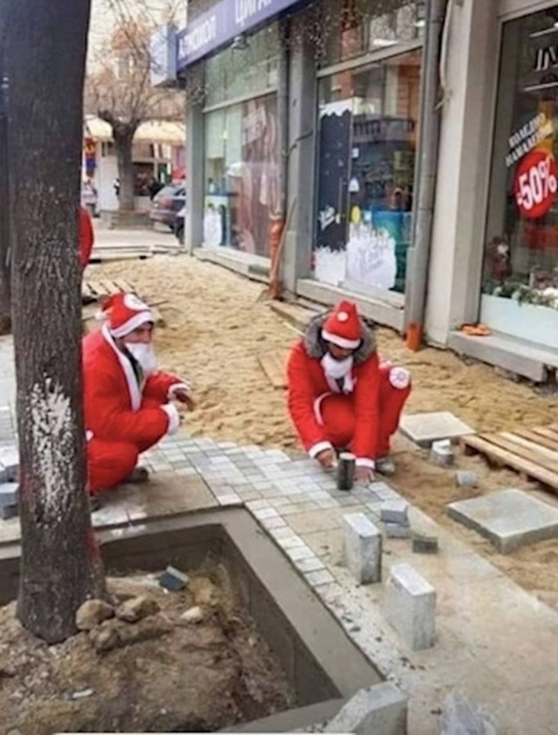 Ove građevinske radnike skroz na skroz je obuzeo blagdanski duh pa su odlučili razveseliti prolaznike prigodnom odjećom. Baš simpa! 😄