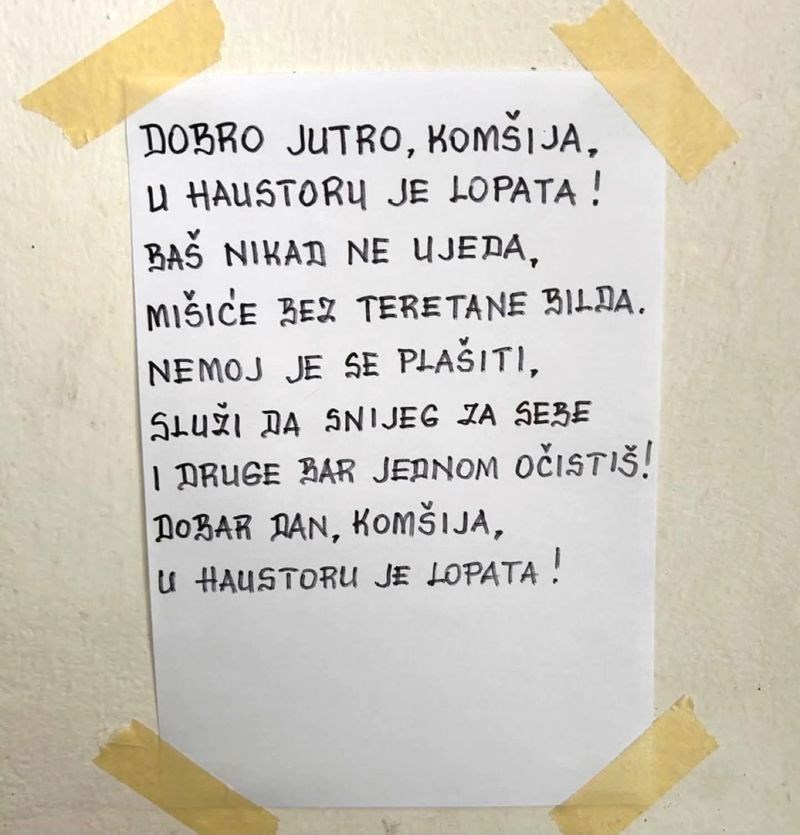Susjedi su napisali pjesmicu tipu koji nikad ne čisti snijeg ispred zgrade, ovo morate vidjeti