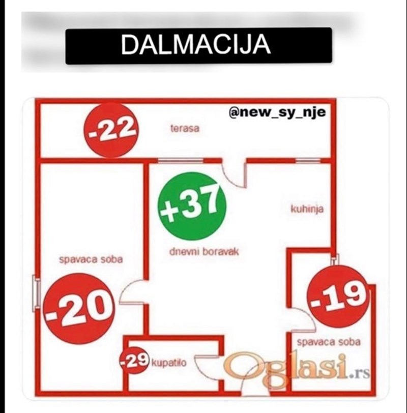 Svi iz Dalmacije složit će se s navedenim prikazom rasporeda temperature po prostorijama unutar kuće. Upravo ovo pišem na -22 🥶