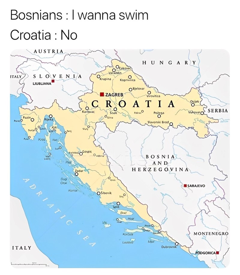 Svjetski popularna Facebook stranica Babushka nasmijala je svoje pratitelje naizgled običnom kartom Hrvatske. No, što je tako smiješno bilo desecima tisuća ljudi, shvatit ćete kada vidite kratki opis uz fotku...
