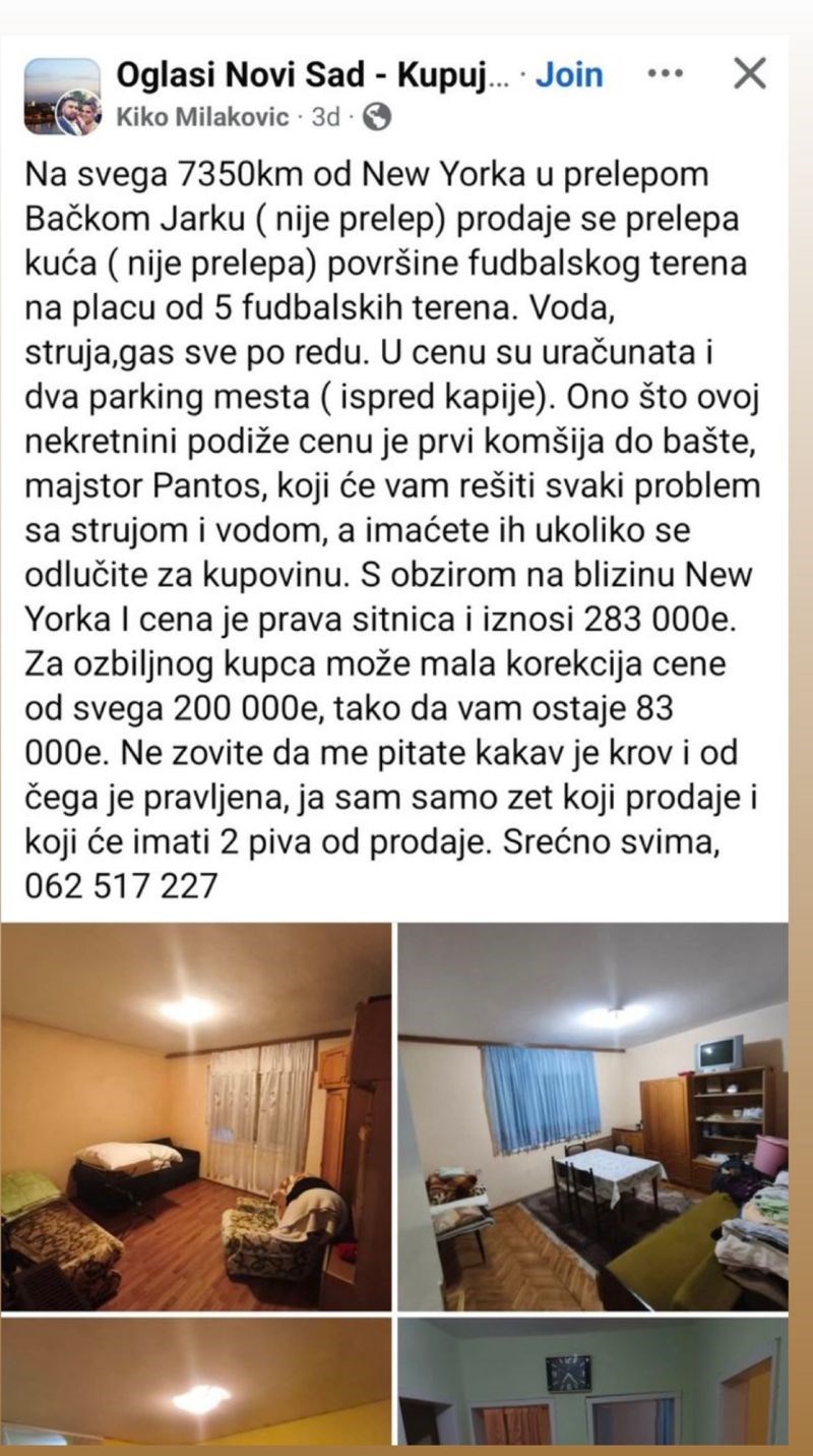 Urnebesni oglas za stan u Novom Sadu apsolutni je hit u regiji, opis će vas nasmijati do suza