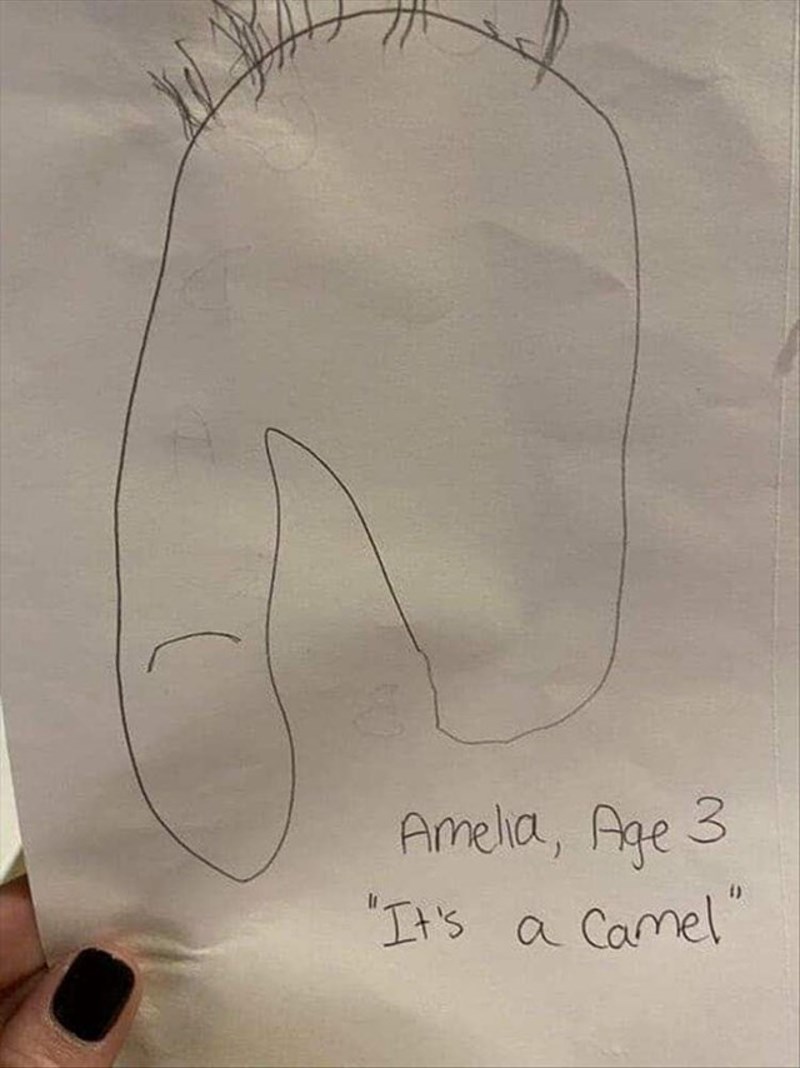 Djeca su u vrtiću dobila zadatak naslikati svoju najdražu životinju. Odgojiteljica se, blago rečeno, zaprepastila kad je vidjela crtež djevojčice Amalie, ali kad joj je objasnila da se radi o devi odmah joj je laknulo.