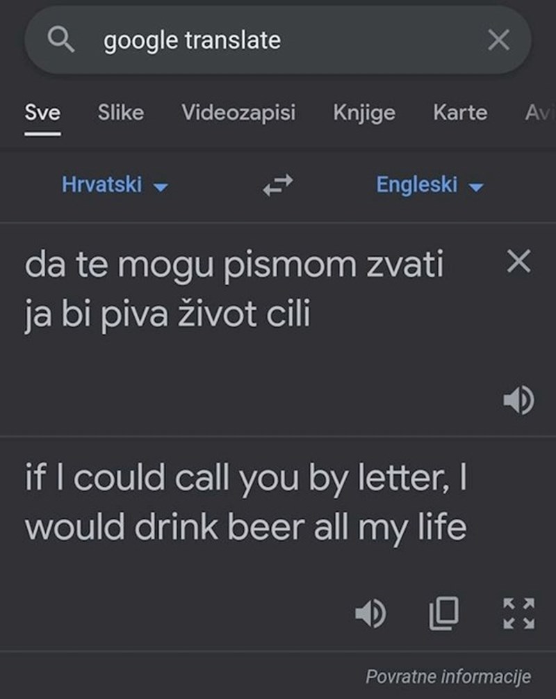 Netko je odlučio provjeriti kako Google prevodi popularnu hrvatsku pjesmu, morate to vidjeti