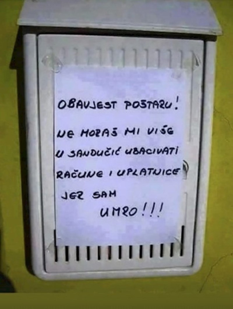 Tip je na sandučiću ostavio nesvakidašnju obavijest za poštara, morate vidjeti što mu je poručio
