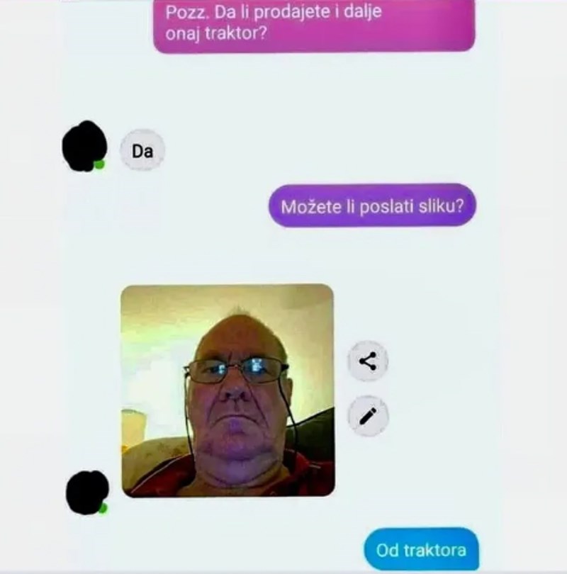 Možda je u tih nekoliko minuta, koliko je trajala izmjena prvih poruka, zaboravio da prodaje traktor. Drugog objašnjenja nema :D