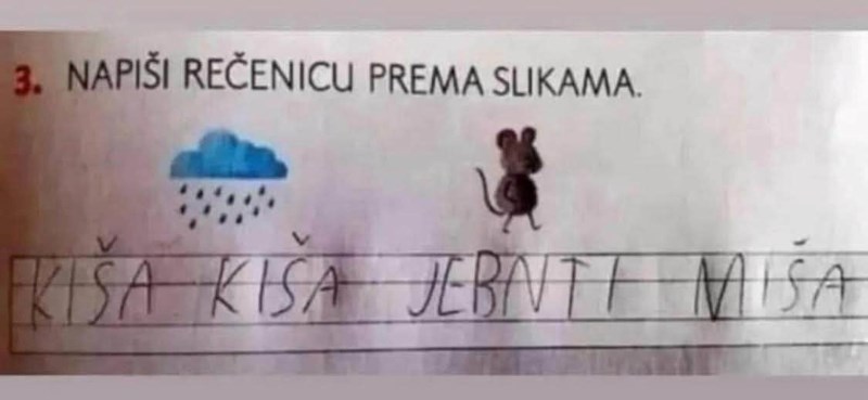 Djeca su dobila zadatak napisati rečenicu prema slikama, sad svi dijele biser ovog klinca