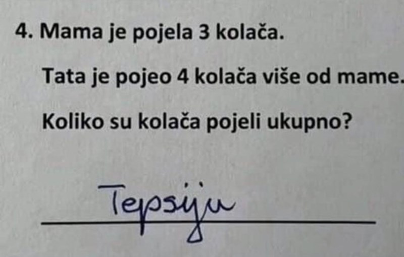 Po rukopisu bi se dalo zaključiti da je ovdje u pomoć priskočio netko stariji, no odgovor je u svakom slučaju teški hit. 😂