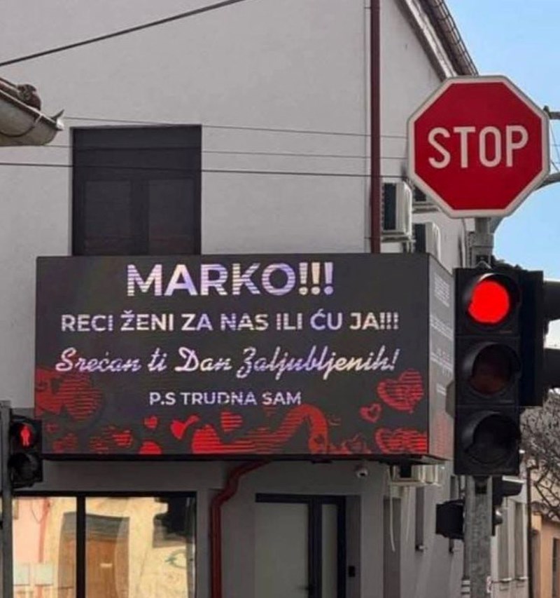 Marku je ljubavnica čestitala Valentinovo preko videozida, kaotičnu poruku dijeli čitava regija