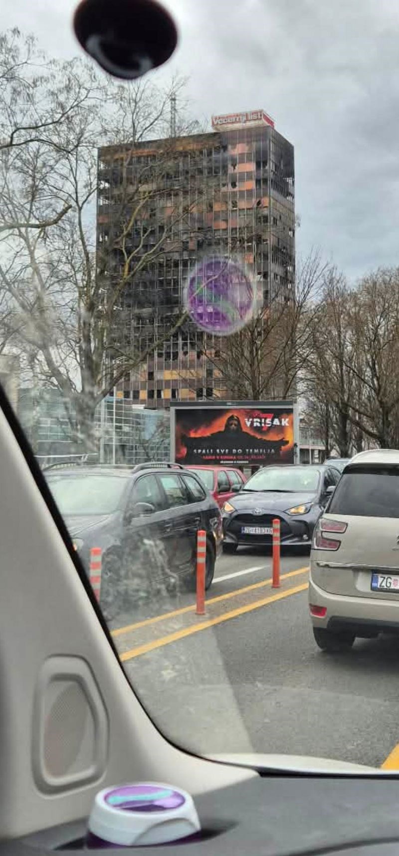Vozač je ispred izgorenog Vjesnika primijetio znakovitu reklamu, ovo teško da može biti slučajno