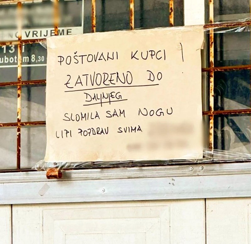 Vlasnica jedne trgovine u Dalmaciji sasvim iskreno je objasnila situaciju koja ju je zadesila i najavila svojim kupcima da trgovina neko vrijeme neće raditi.