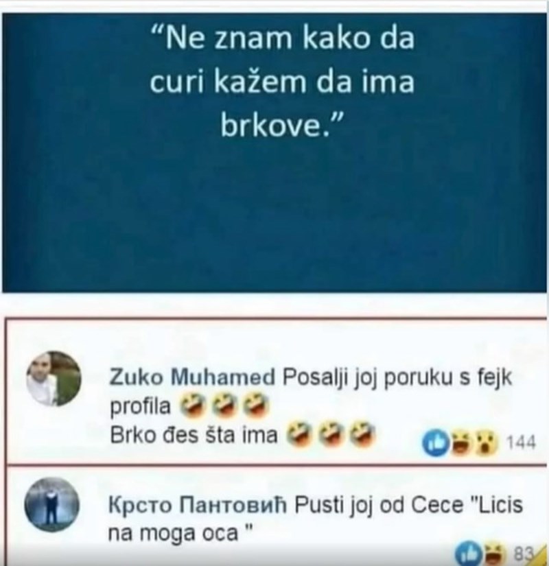 Bolje da joj kaže preko mikrofona na Thompsonovom koncertu, nego na način koji su mu ovi biseri s Fejsa savjetovali... :D