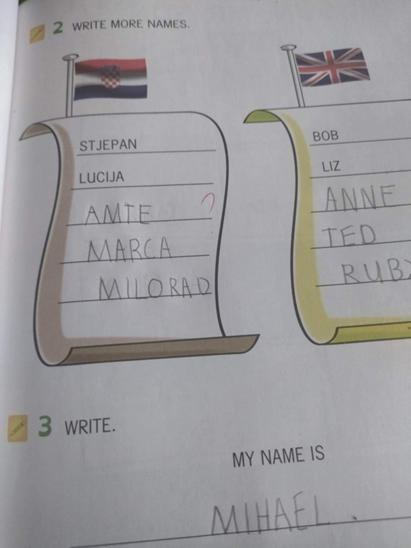 Dijete je moralo napisati tipična imena iz raznih država, morate vidjeti koja je navelo za Hrvatsku