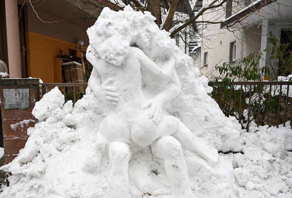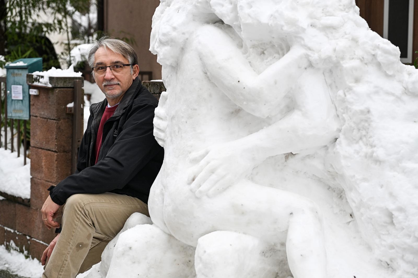 AKADEMSKI umjetnik i profesor na zagrebačkoj Akademiji likovnih umjetnosti Siniša Reberski napravio je erotsku skulpturu od snijega.