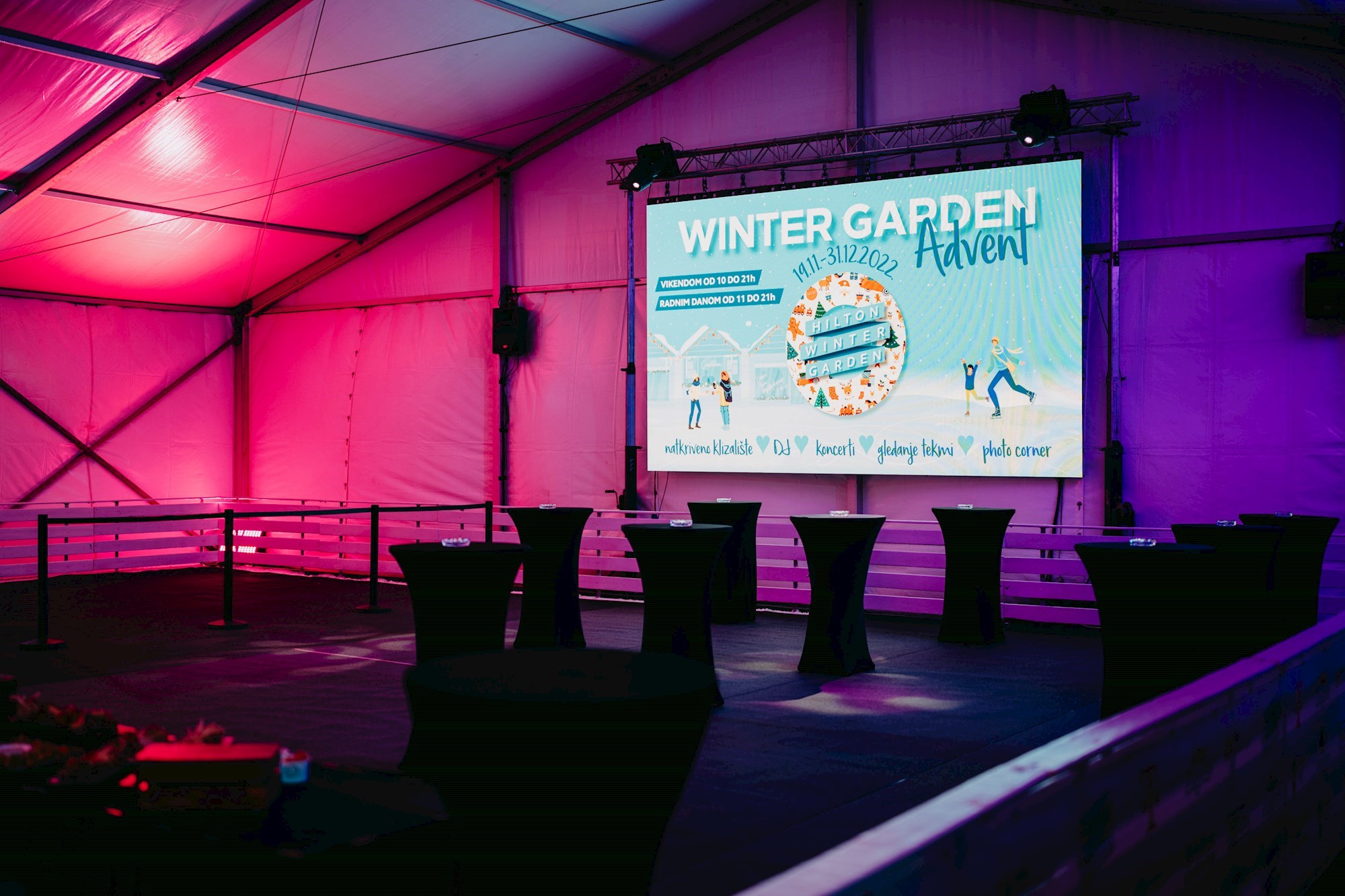 Na Winter Garden adventu možete organizirati svoje privatne i službene proslave i događanja kao i domjenke. Za sve informacije kontaktirajte odjel evenata na zagreb.events@hilton.com.