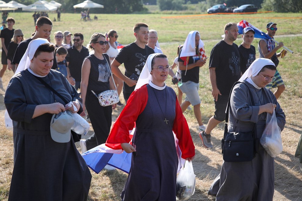 FOTOREPORTER Cropixa snimio je tri časne sestre koje zajedno s drugim obožavateljima Thompsona idu na večerašnji koncert. Jedna od njih ogrnuta je hrvatskom zastavom, čak su joj rukavi crvene boje i dio hrvatske zastave kojom je ogrnuta, a sve imaju prozirne vrećice u koje su stavile stvari kako bi mogle ući na Hipodrom.