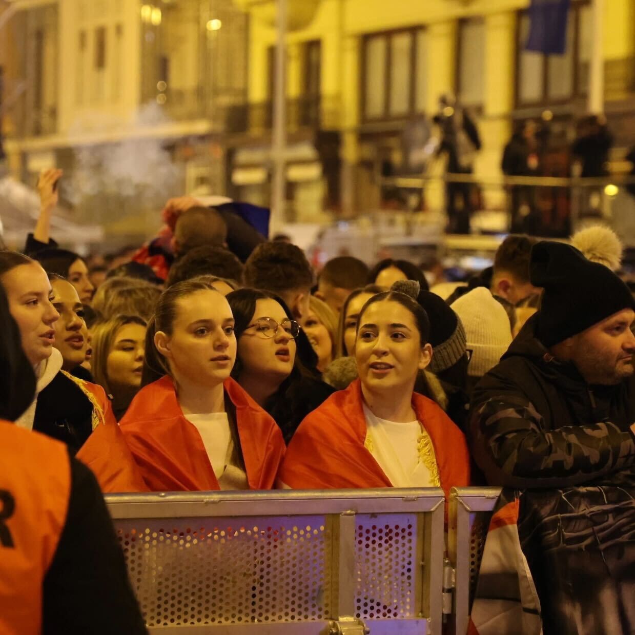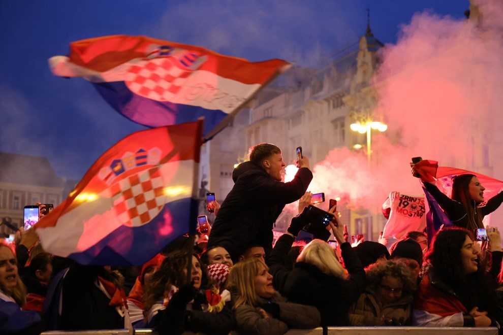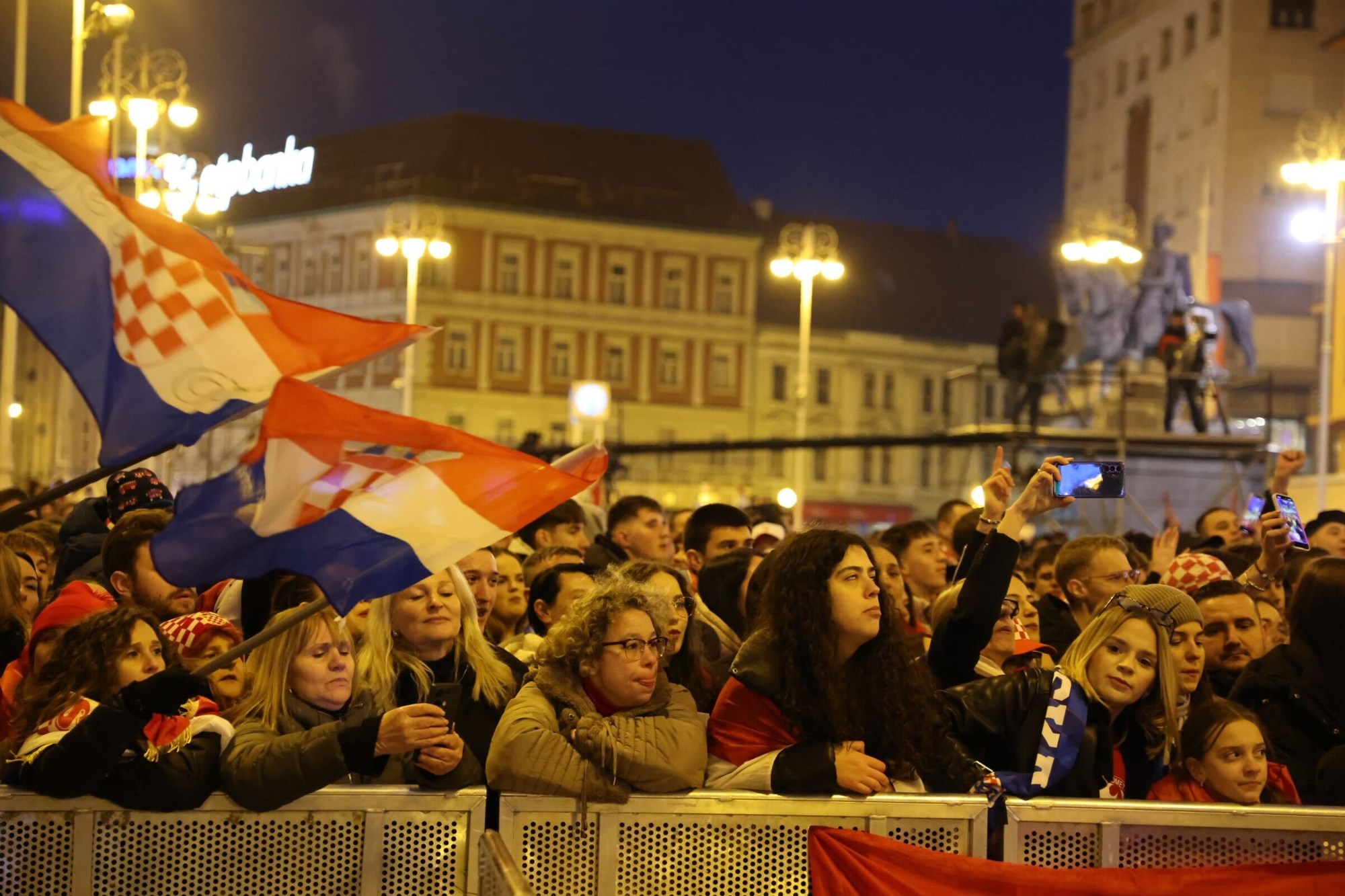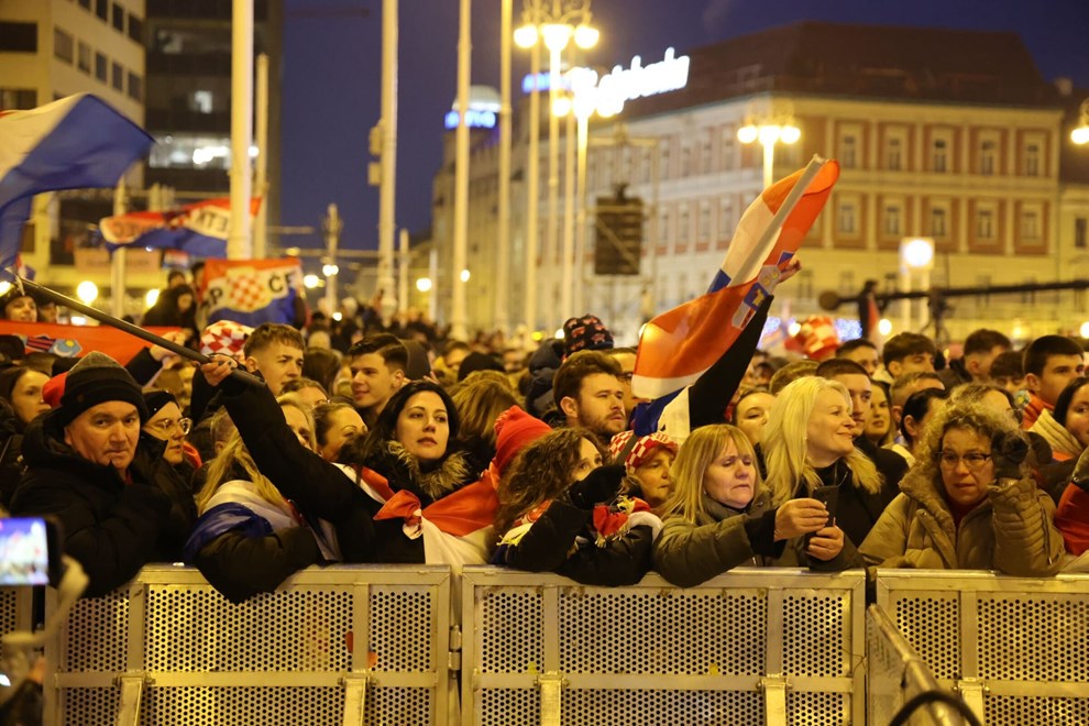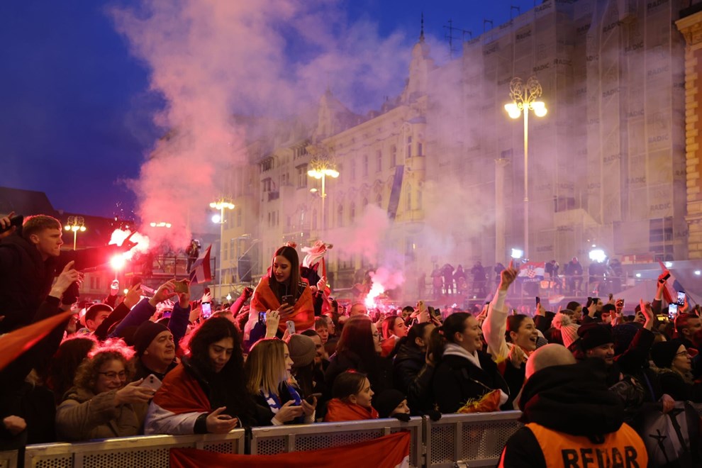 NA TRGU bana Jelačića odvijaju se zadnje pripreme za doček navijača. Tijekom tonske probe zasvirala je Lijepa li si, a okupljena je publika pjesmu dočekala s bakljama i pjevala uglas s bendom.