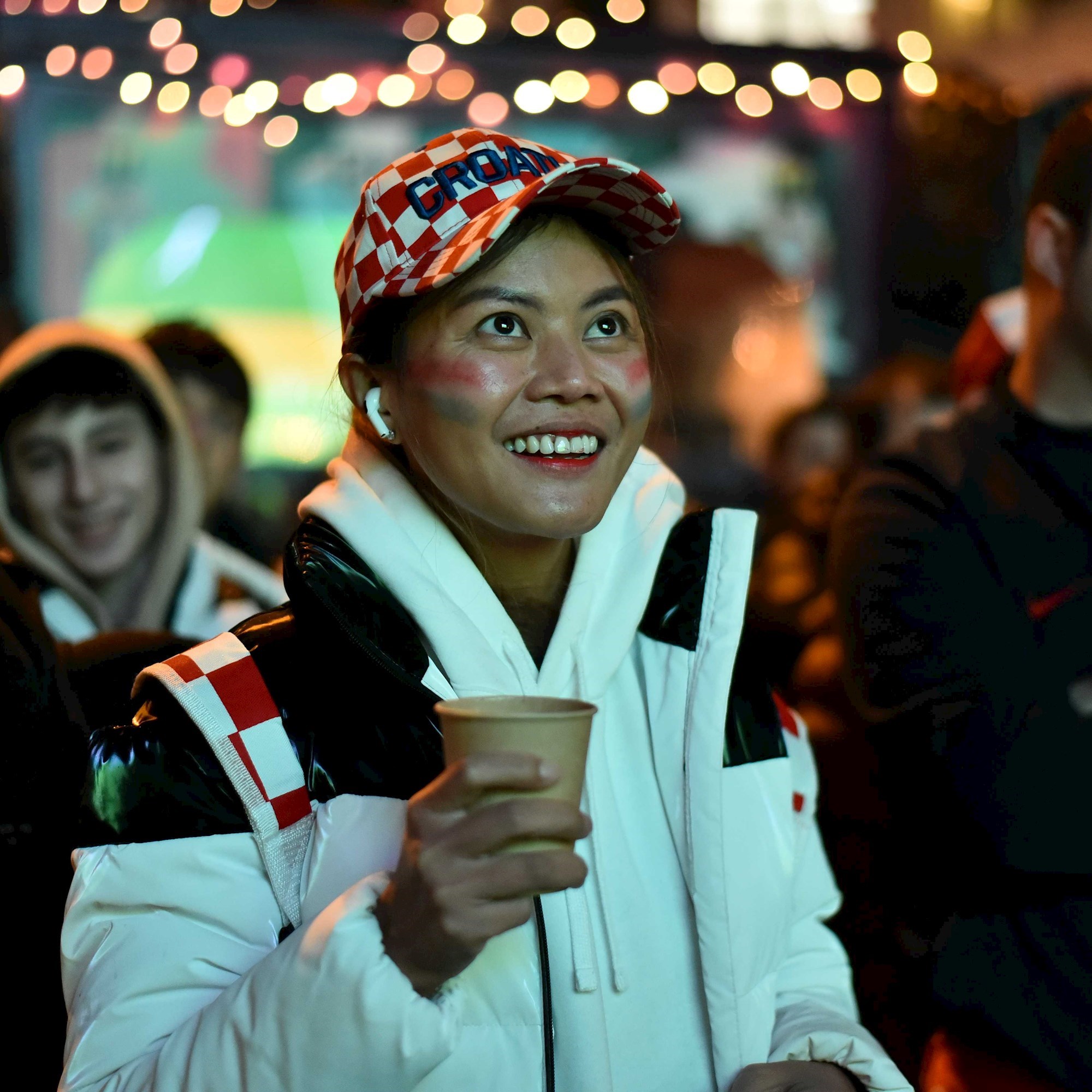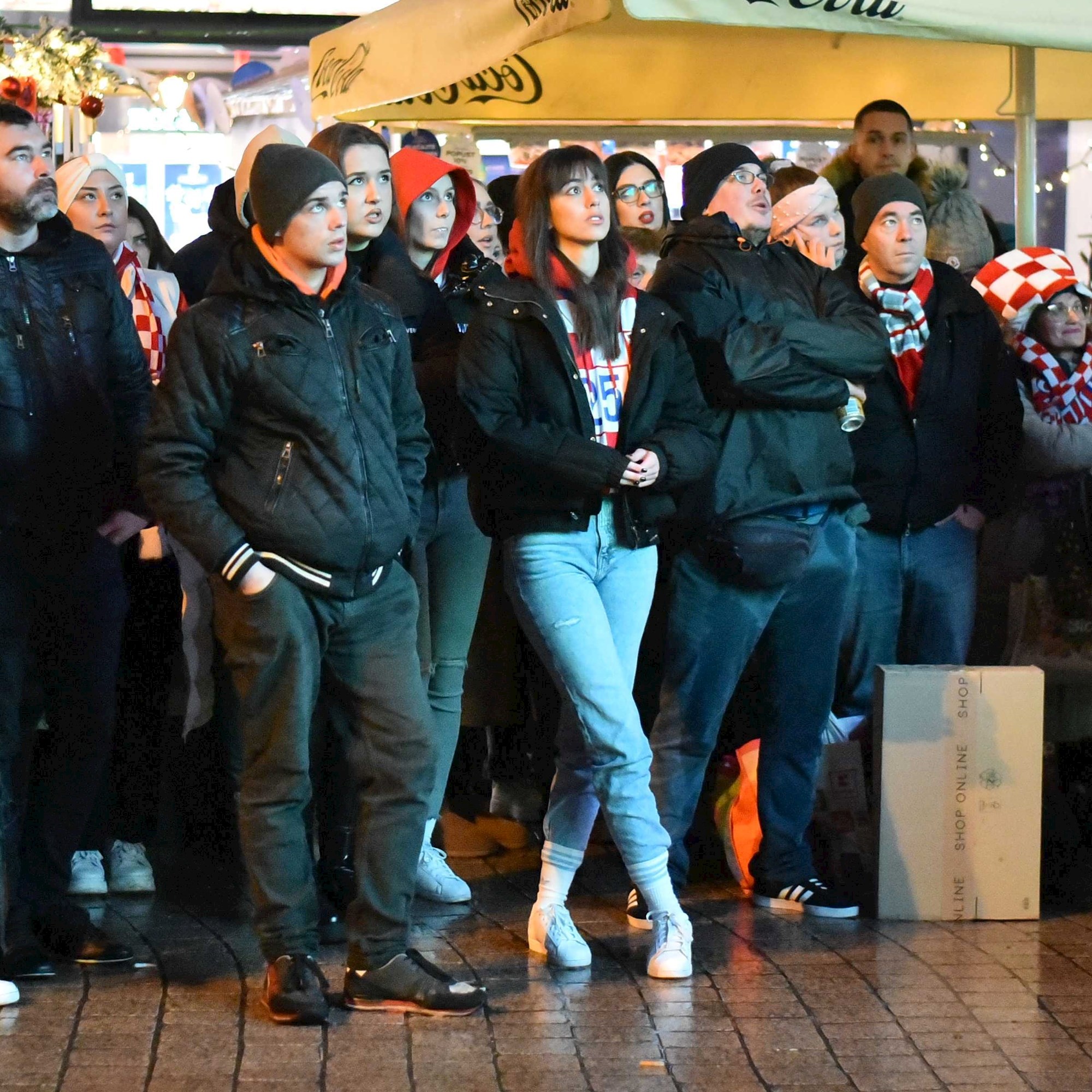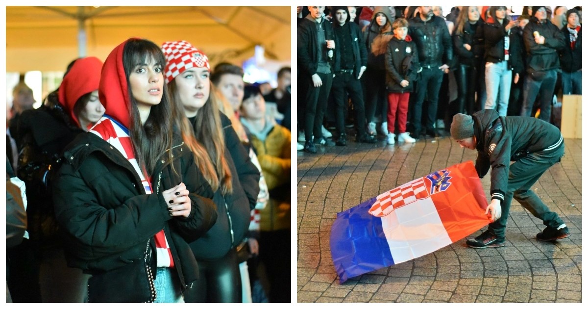 Brojni građani pojavili su se na navijačkim punktovima u dresovima i ogrnuti zastavama te pod kišobranima pjevaju navijačke pjesme.