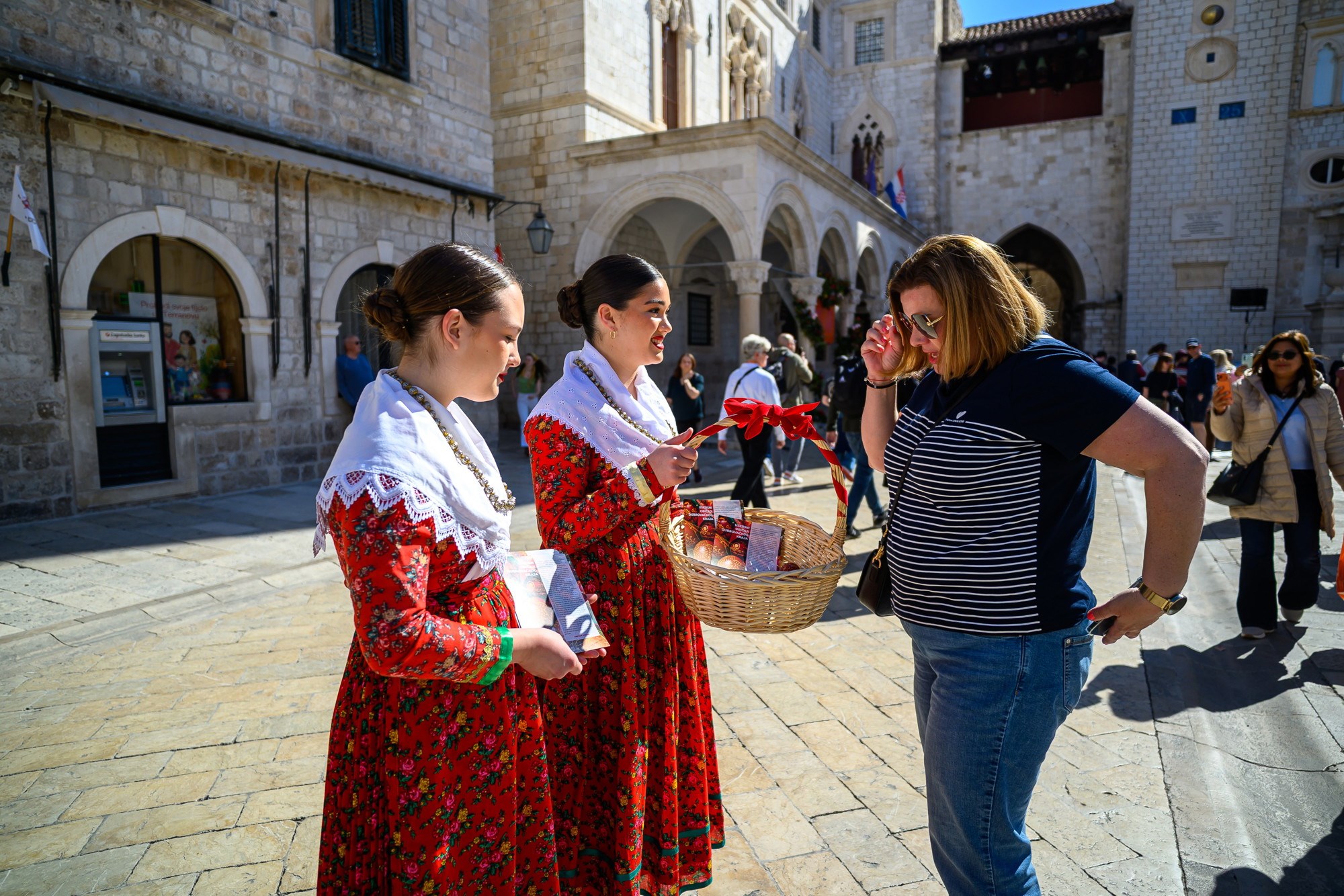 Središnji dio događanja bila je podjela obojenih uskrsnih jaja, koja su dijelile djevojke odjevene u tradicionalne nošnje. Posebnu atmosferu događaju dao je nastup klape Ragusa. Njihova višeglasna izvedba odjekivala je kamenim ulicama stare gradske jezgre, stvarajući autentičan ugođaj koji spaja glazbenu baštinu i blagdanski duh.