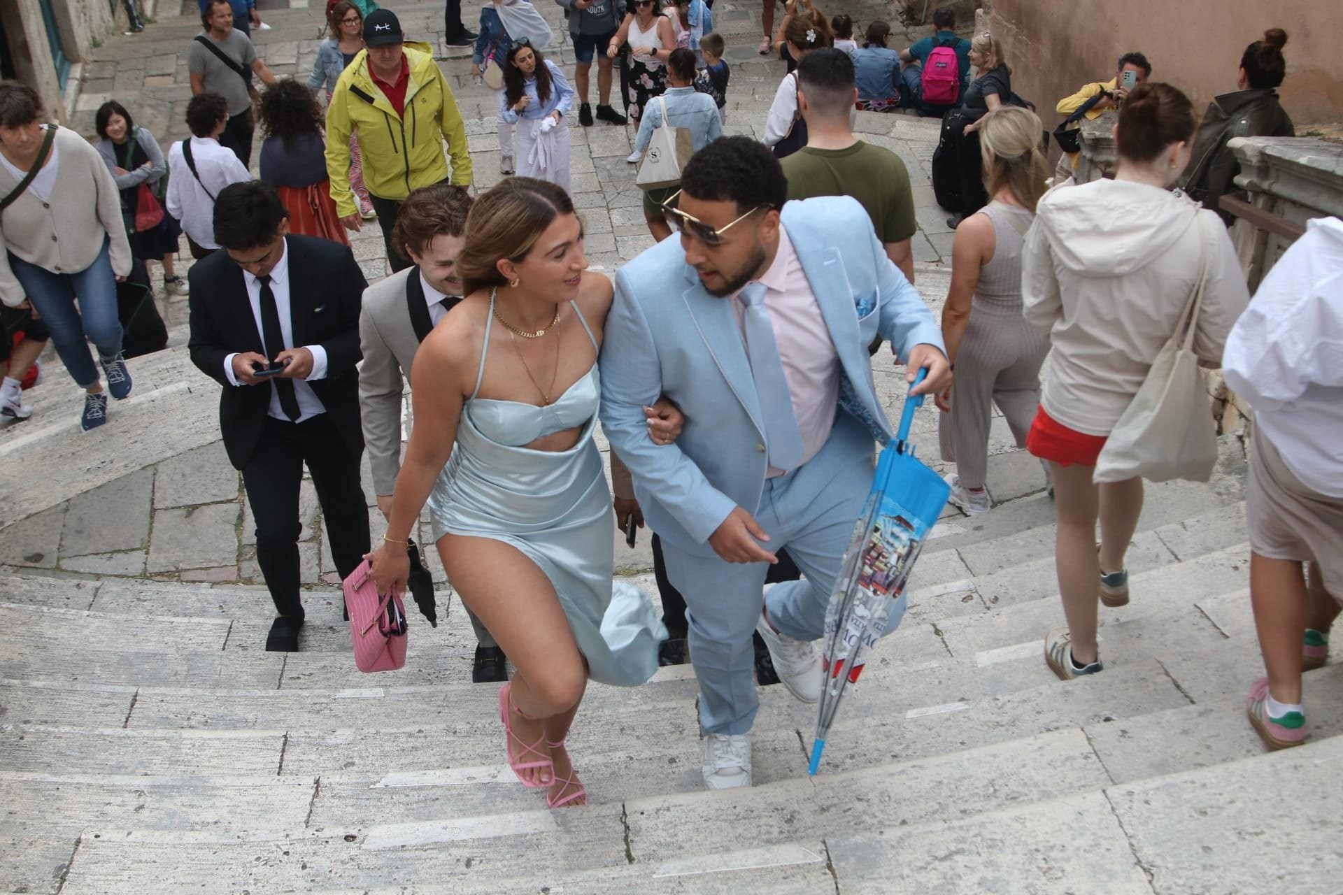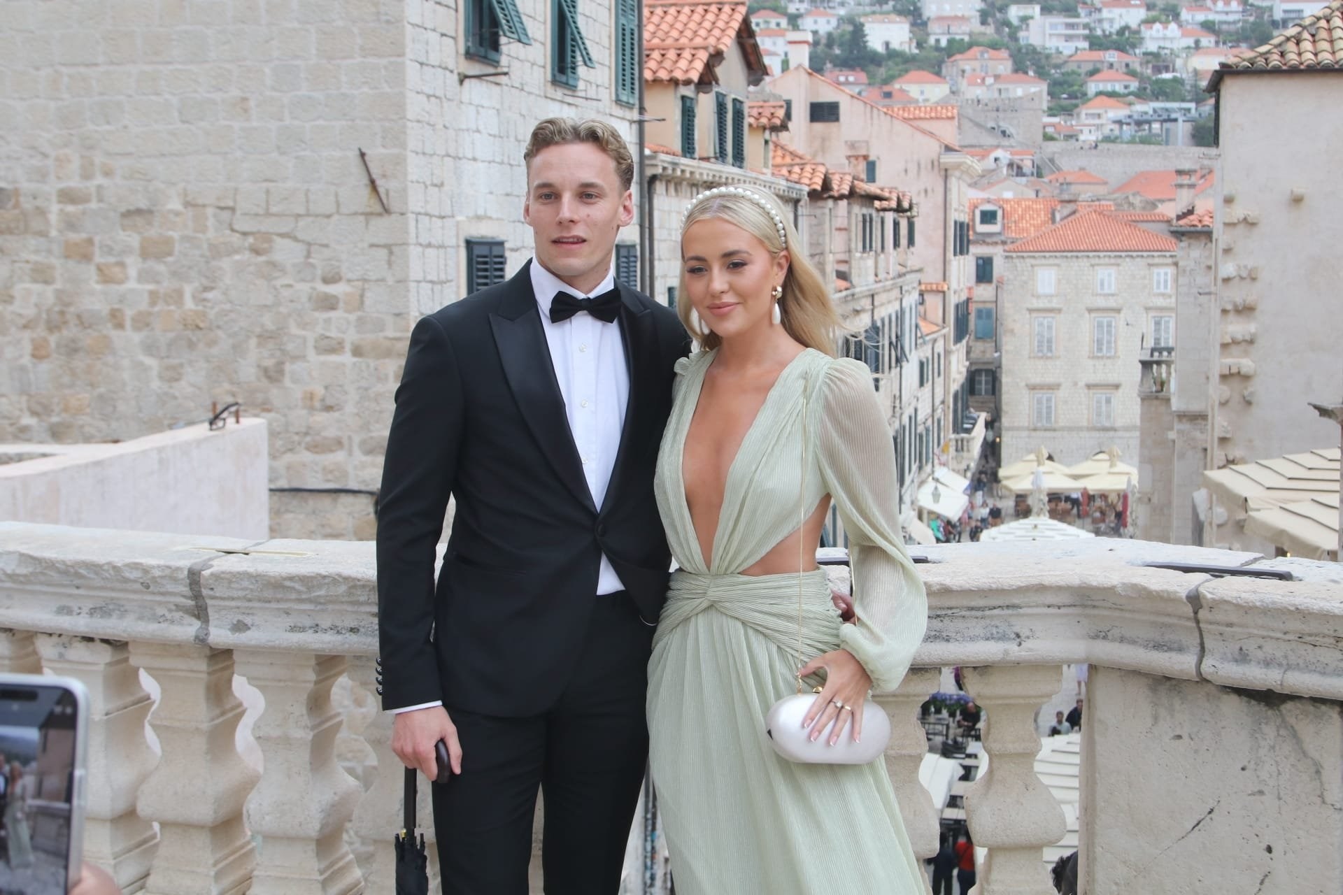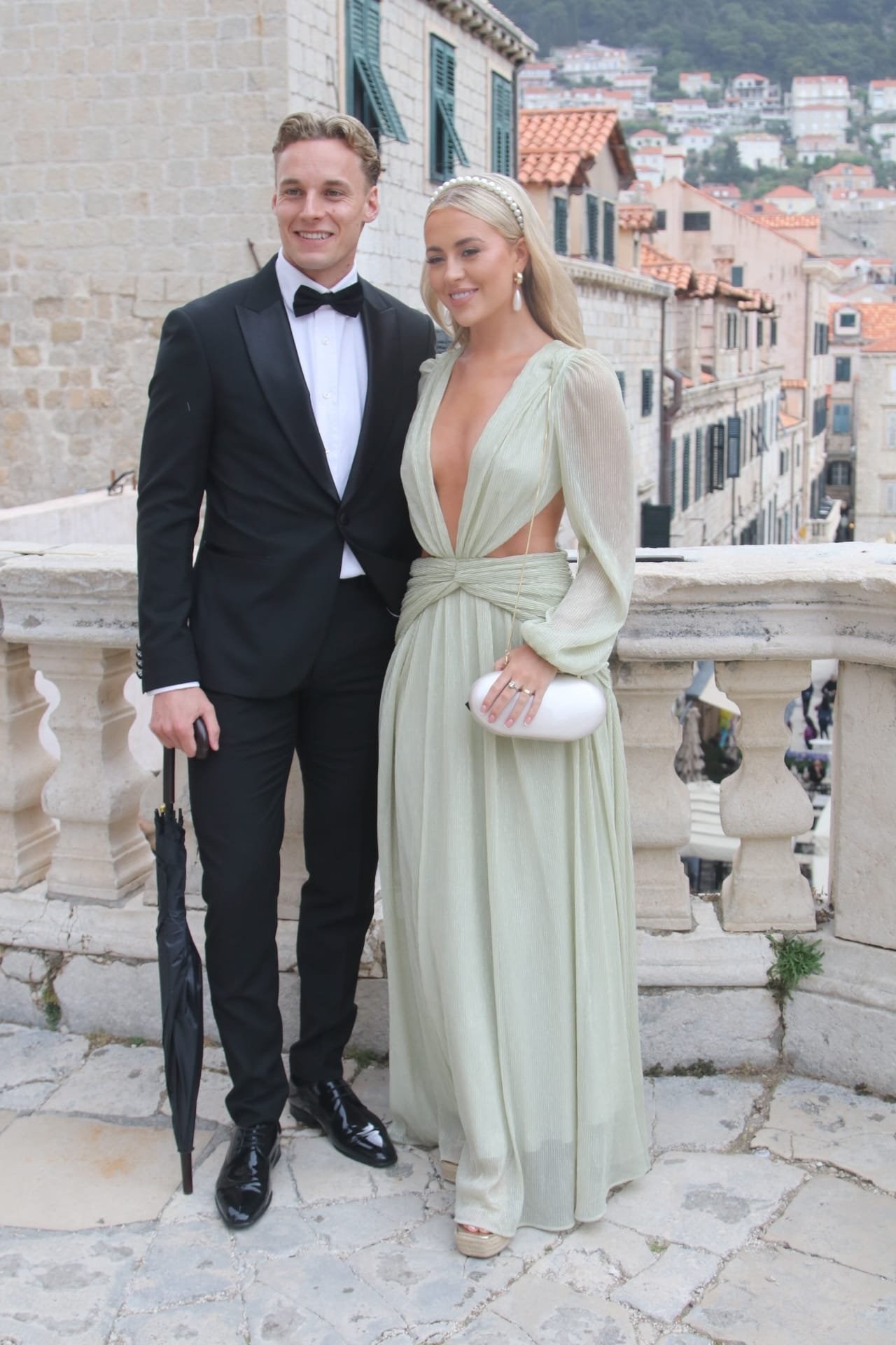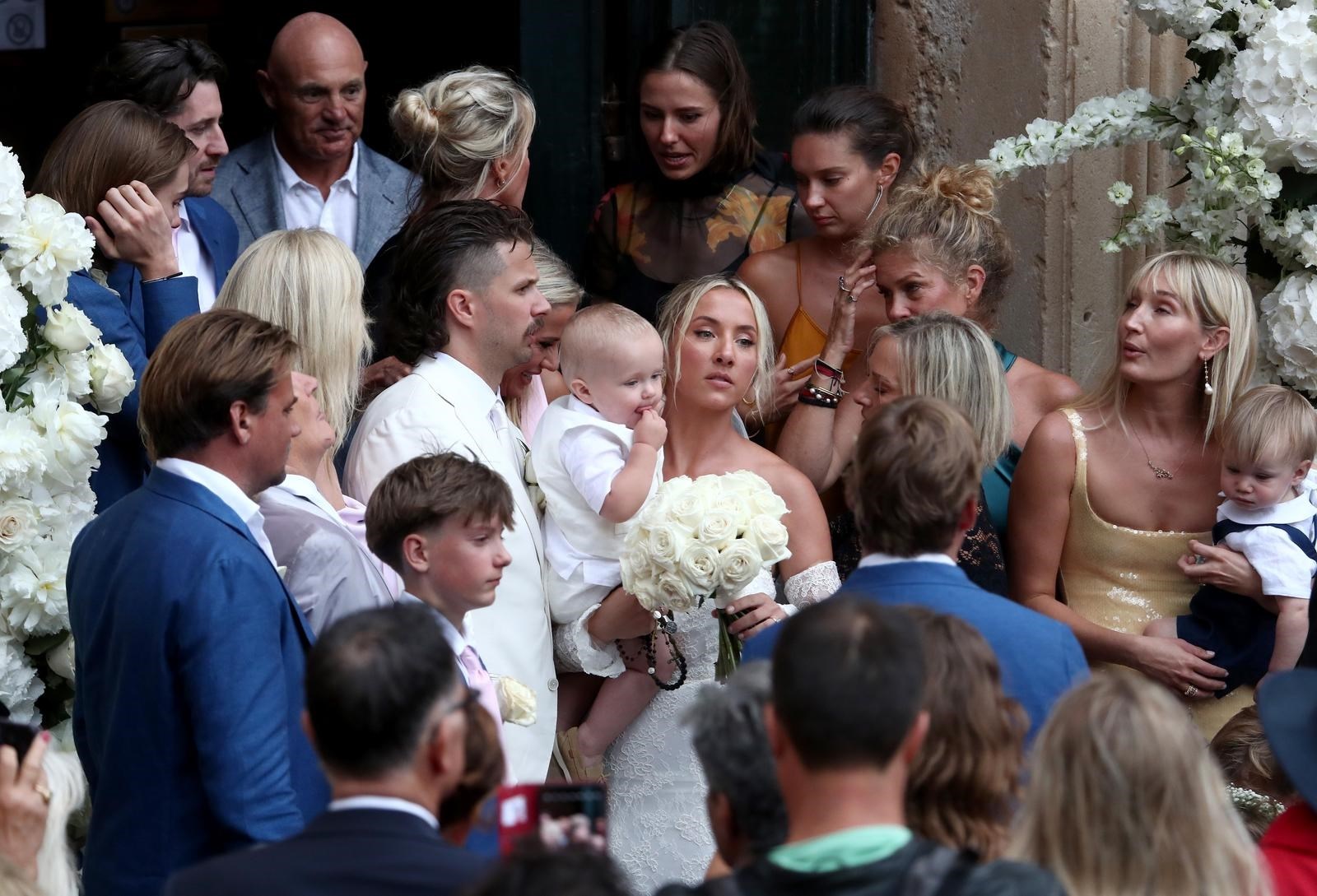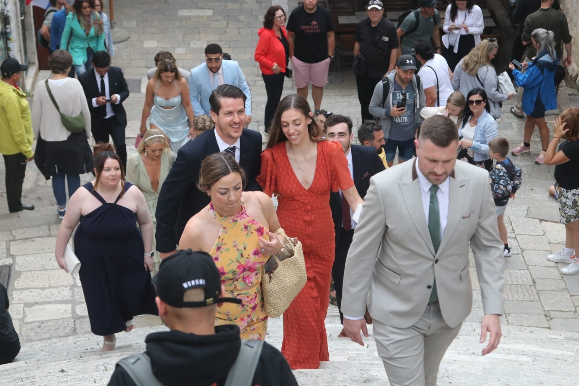 Kada je mladenka Nicole Artukovich stigla, počela je kiša pa su je natkrili velikim bijelim kišobranom. No bila je dobro raspoložena unatoč kiši. Mladoženja Liam Stewart obukao je bijelo odijelo. Prve fotografije objavio je Dubrovački dnevnik, a možete ih pogledati u galeriji.