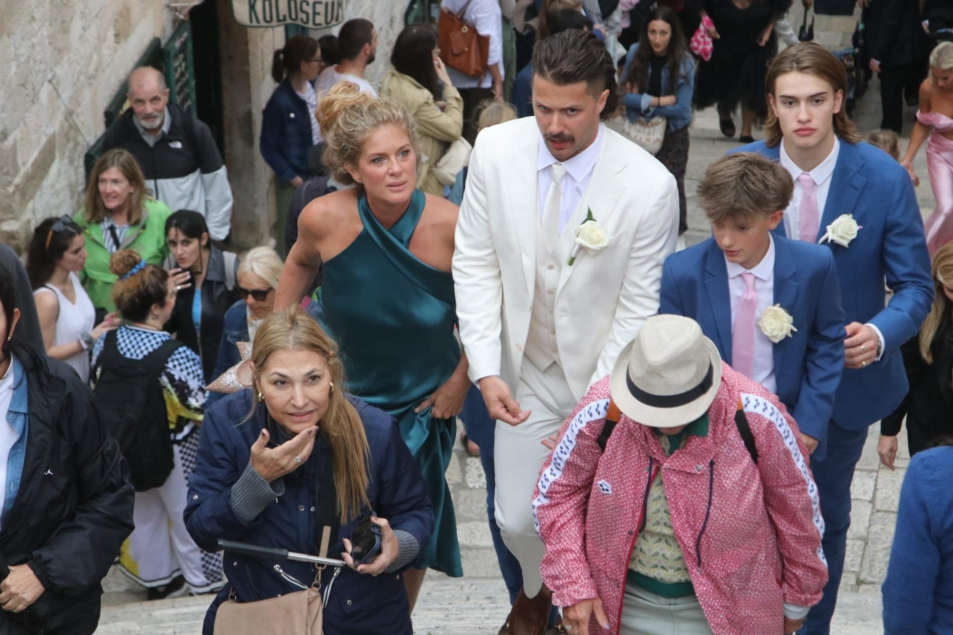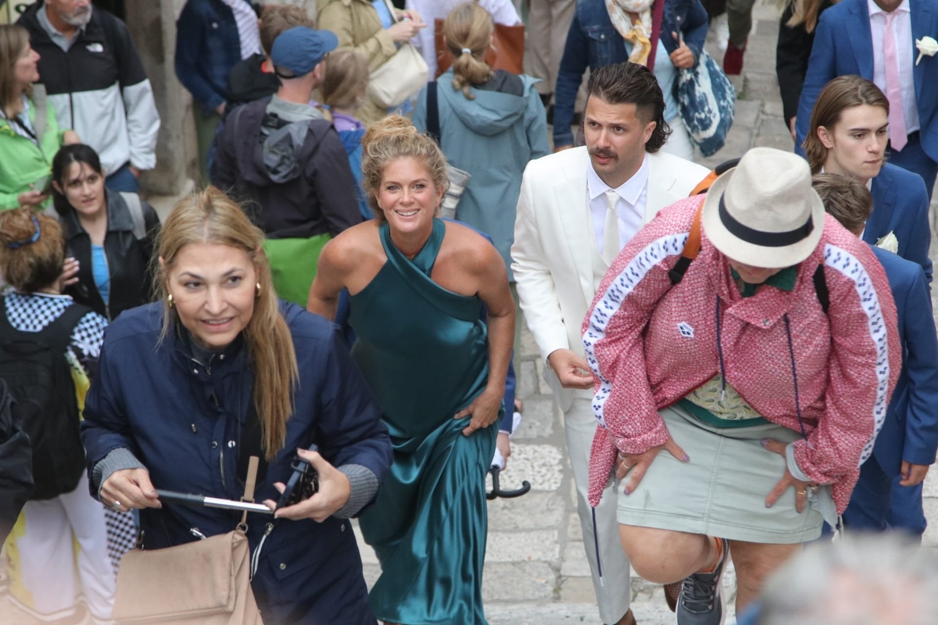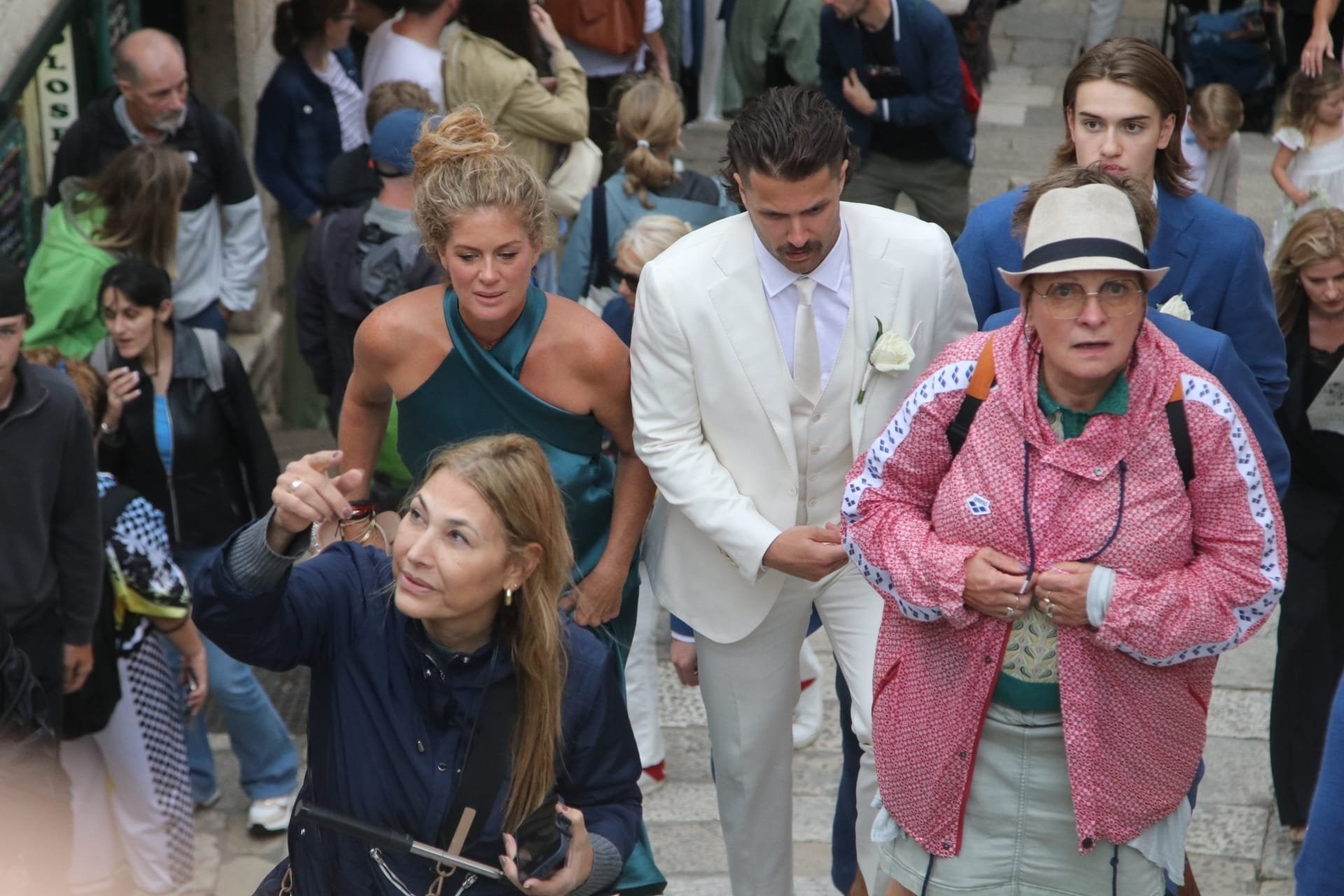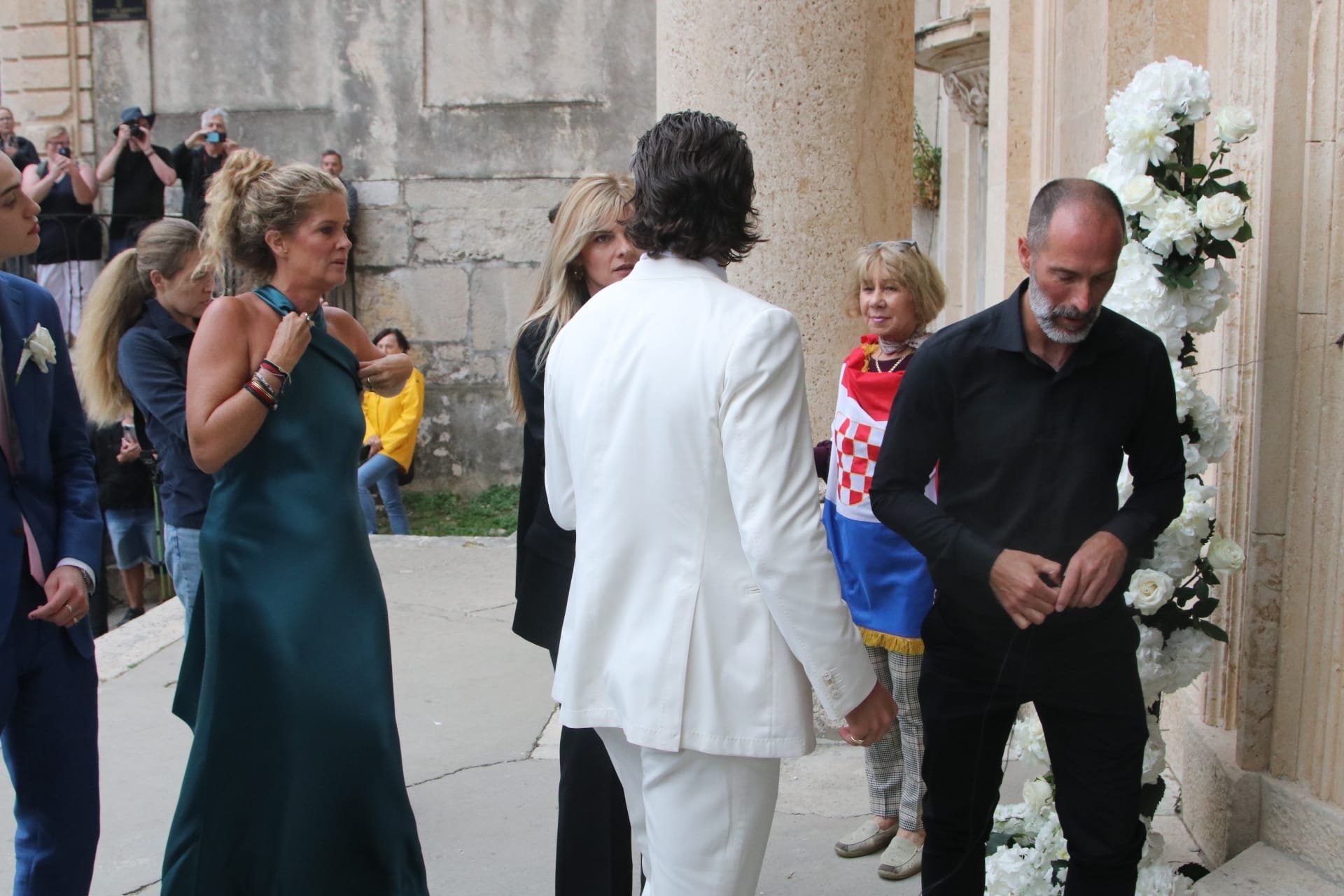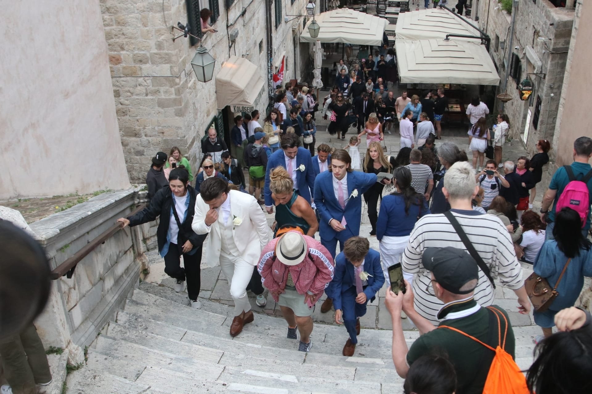 Gosti su se okupili ispred dubrovačke crkve sv. Ignacija na Jezuitima. Legendarni glazbenik među prvima je stigao ispred crkve i izazvao pomutnju. Turisti su ga opkolili kako bi se slikali s njim.