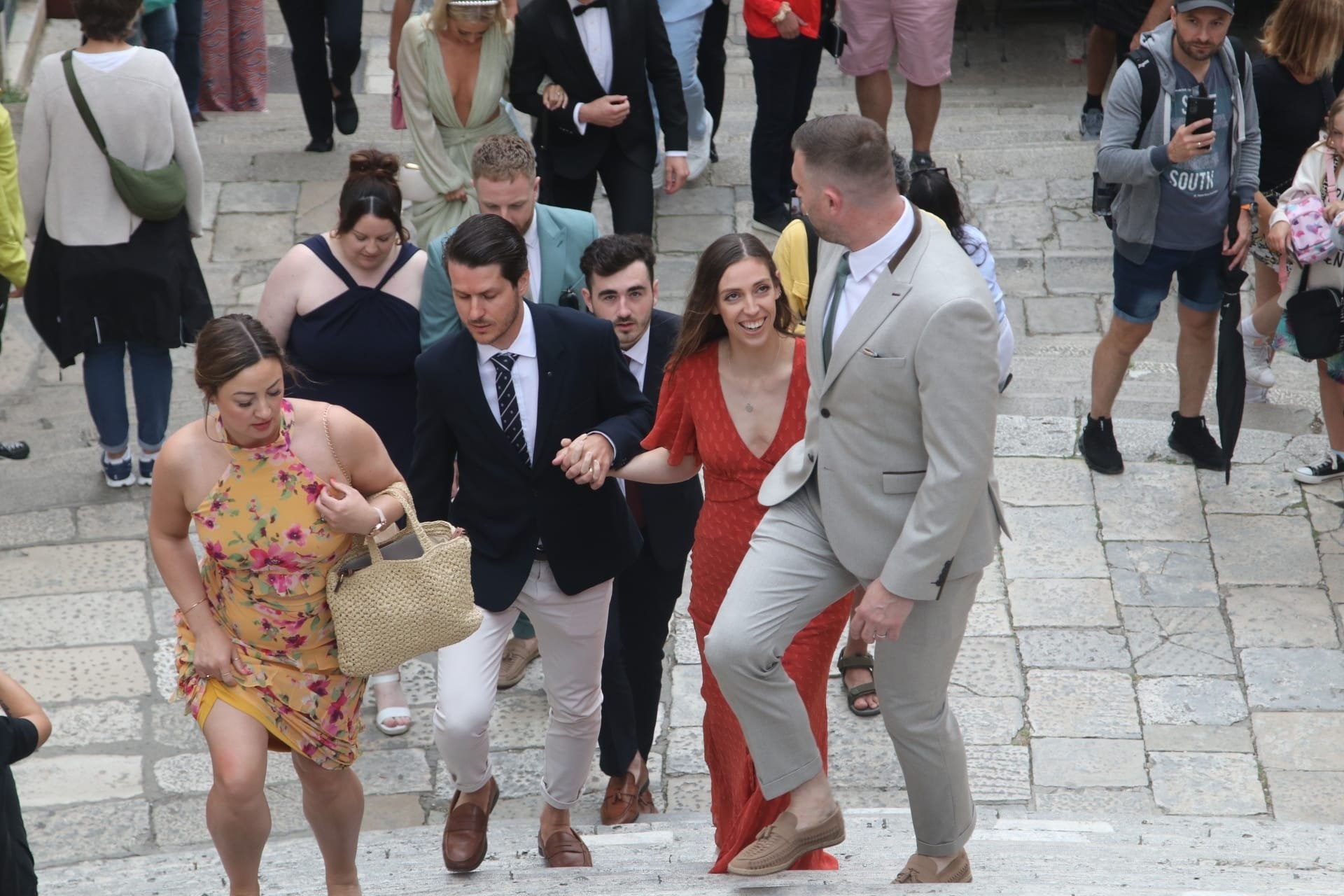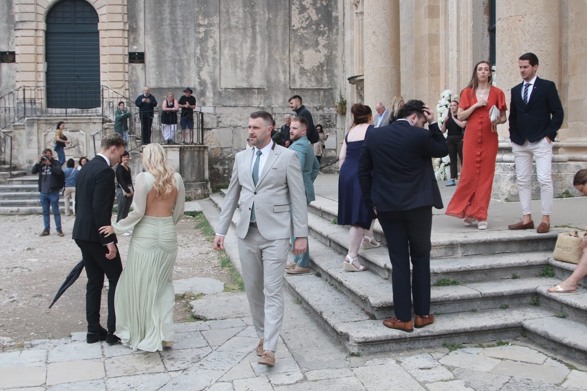 Nakon vjenčanja uslijedilo je veselje ispred crkve. Zasvirale su gajde, s obzirom na to da je mladoženja Škot, a Rod je i zapjevao. Dubrovački dnevnik objavio je video.