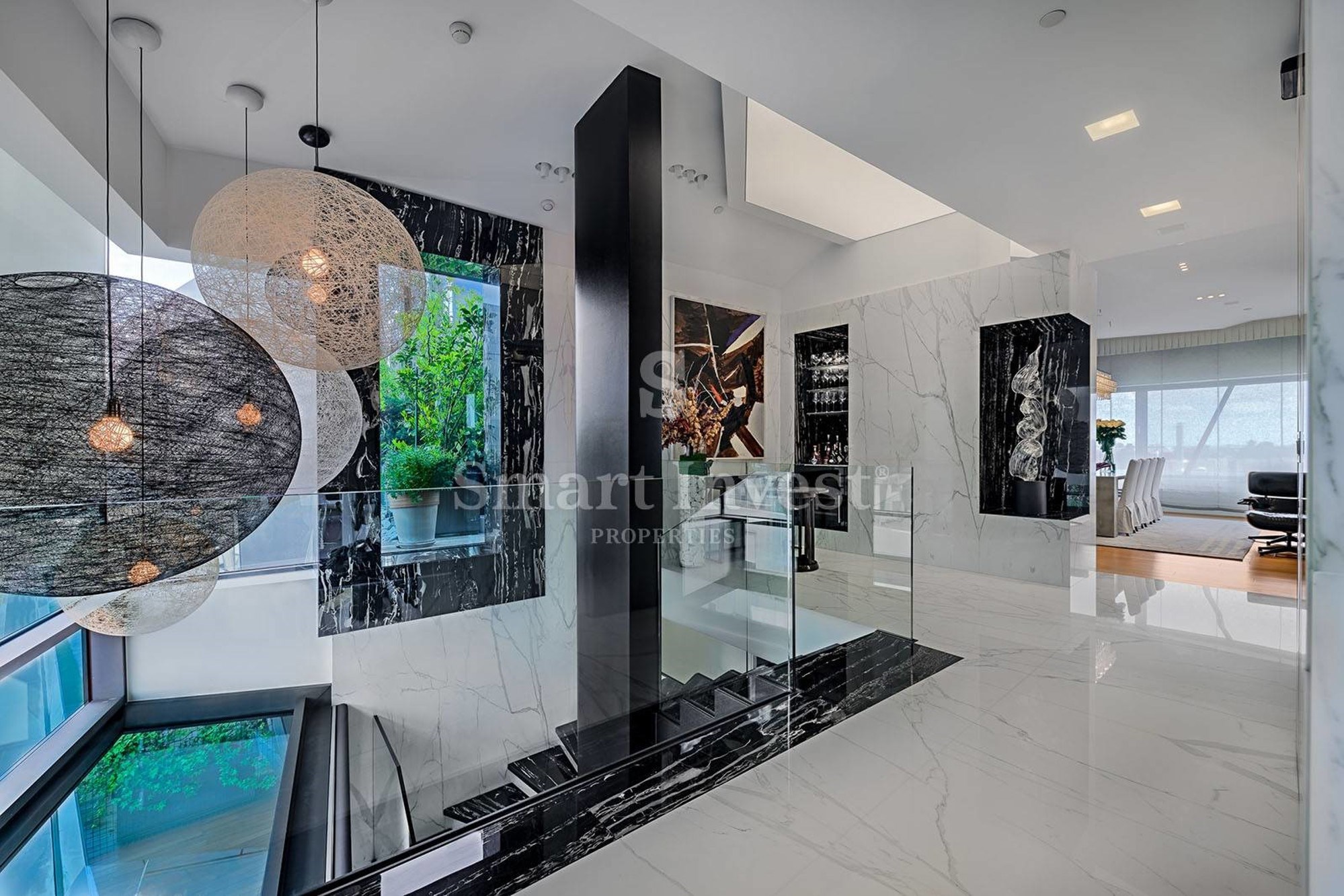 Stan se sastoji od tri spavaće sobe i tri kupaonice, ali tu su i prostrani dnevni prostor, kuhinja "chefa" (tako je nazivaju, zaista), i preko 160 m2 vanjskih prostora i terasa. Na prvoj etaži nalazi se ulazni prostor iz kojeg se pristupa u sve prostorije. Ova etaža je osmišljena kao privatni dio stana s tri spavaće sobe, dvije kupaonice i prostrane garderobe, a tu je i ostava/praonica za rublje, i zimski vrt.