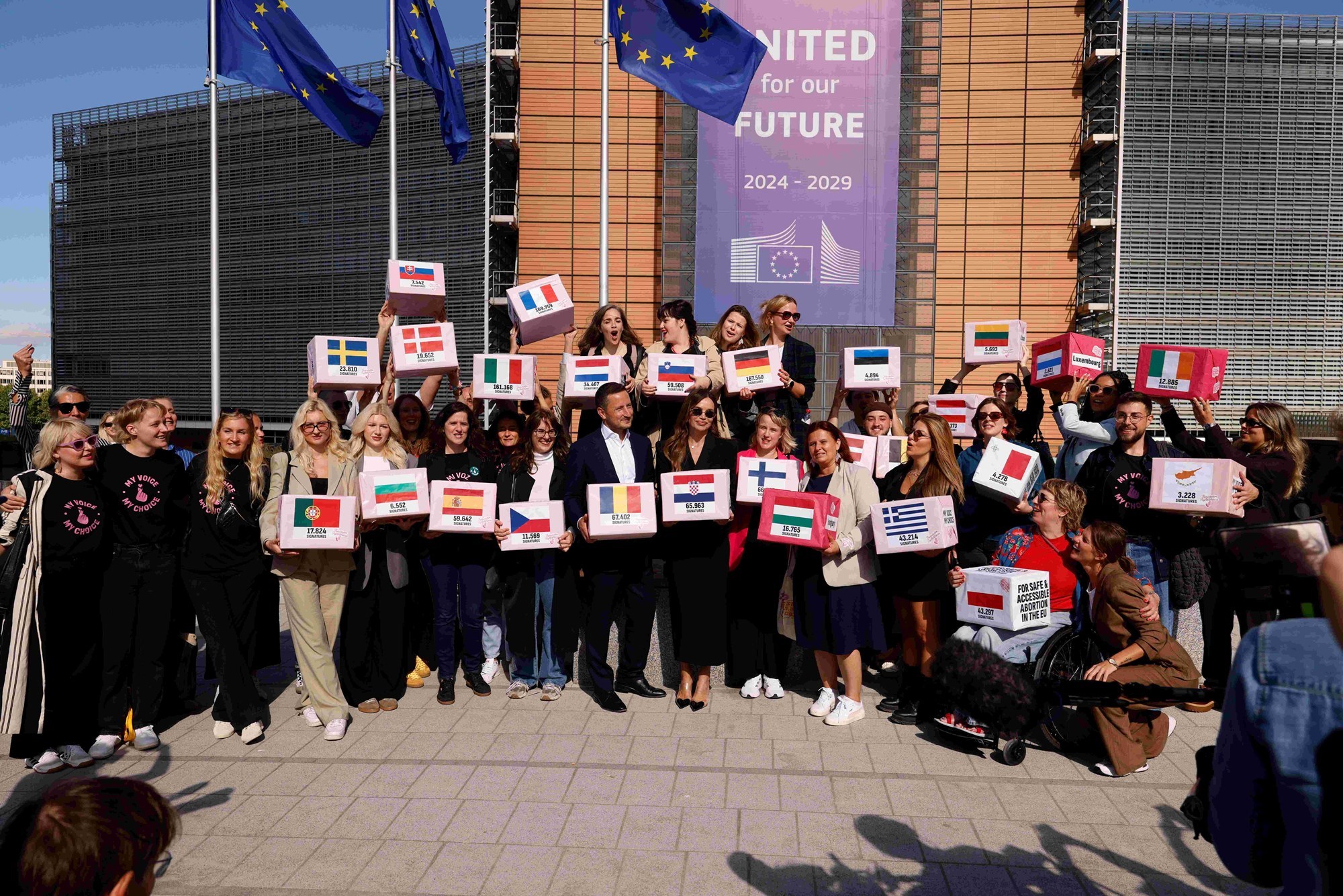 Inicijativa My Voice, My Choice od Europske komisije traži prijedlog za financijsku potporu državama članicama koje bi mogle provoditi sigurne prekide trudnoće za građanke Europe, koje još uvijek nemaju pristup sigurnom, besplatnom i zakonitom pobačaju.