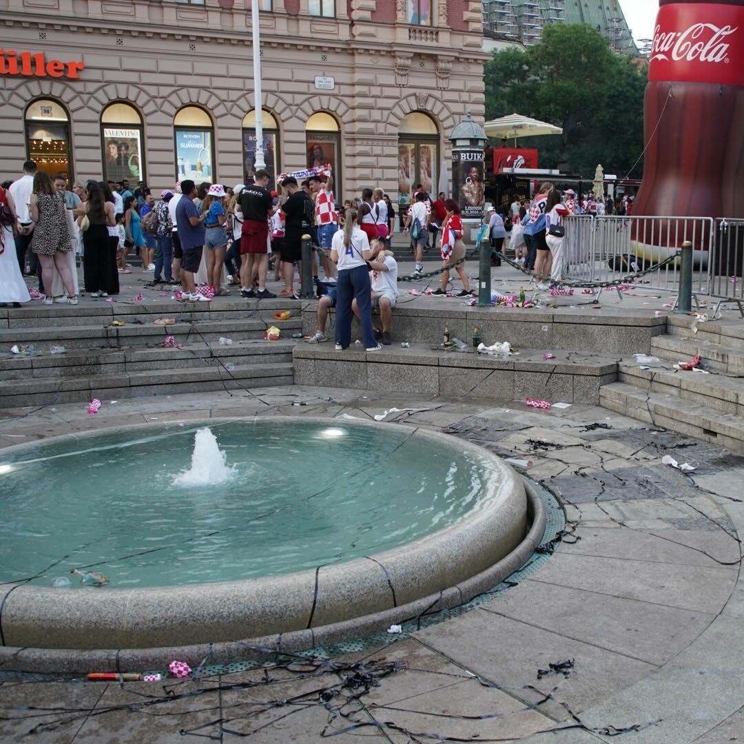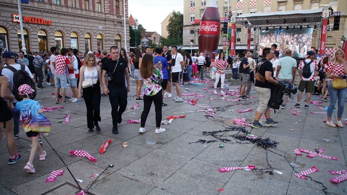NAKON utakmice Španjolske i Hrvatske Trg bana Jelačića počeo se prazniti, ali je ostala gomila smeća.