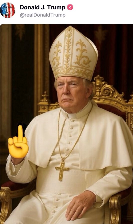 Netko je napravio i mem na kojem preko originalne slike piše "Antikrist se odjenuo kao papa", te je mem uredio da izgleda kao da je objavljen na Trumpovom Truth Social profilu.