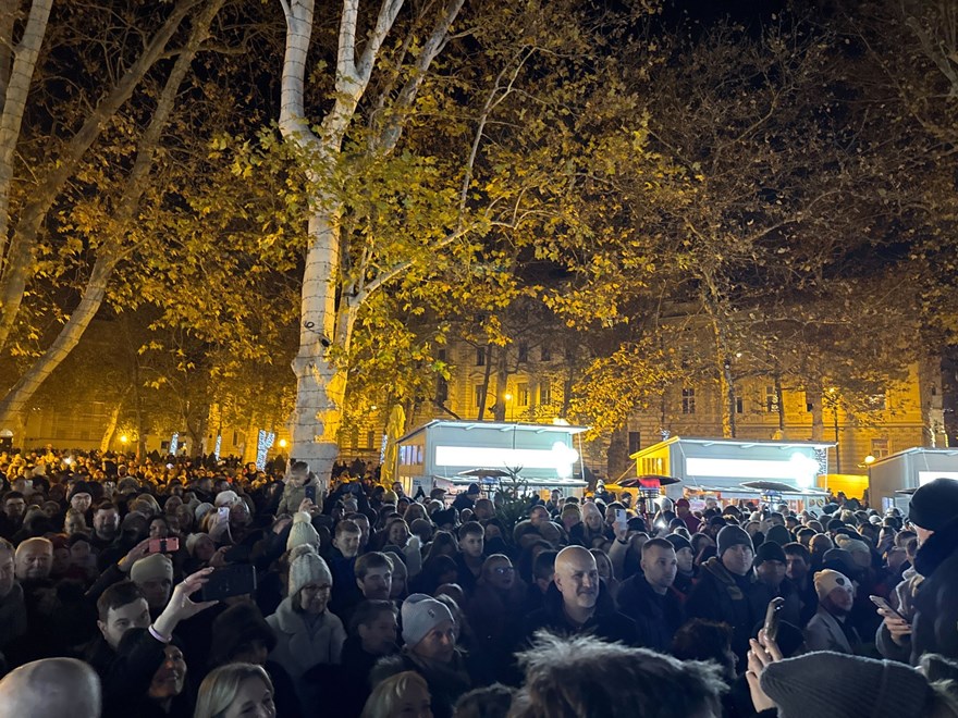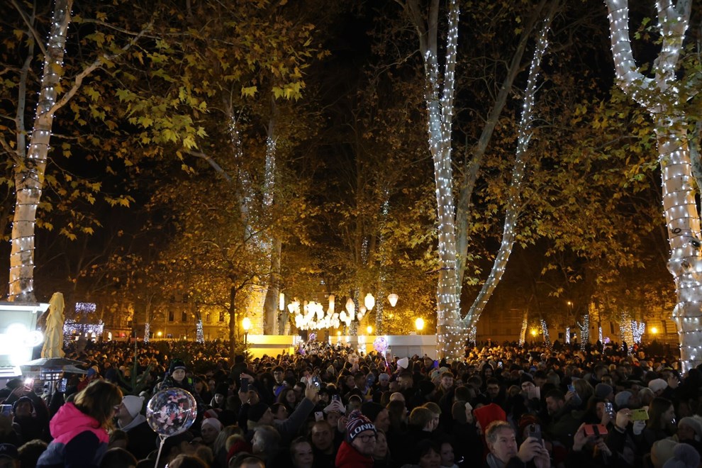 Vrhunac večeri dogodio se u 19:45 sati na Zrinjevcu, koji je tradicionalno zasjao posebnim sjajem. Paljenjem čak 25 tisuća lampica, jedan od najljepših zagrebačkih parkova pretvorio se u pravu blagdansku bajku, a predivan prizor promatralo je mnoštvo građana koji su ispunili park.