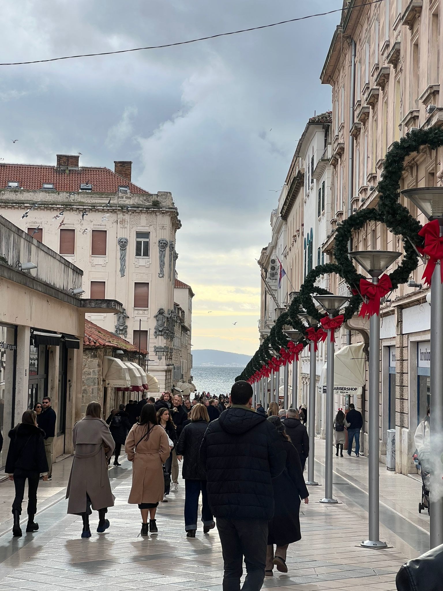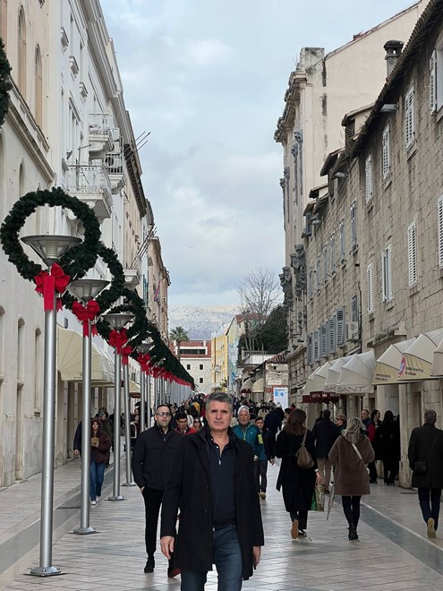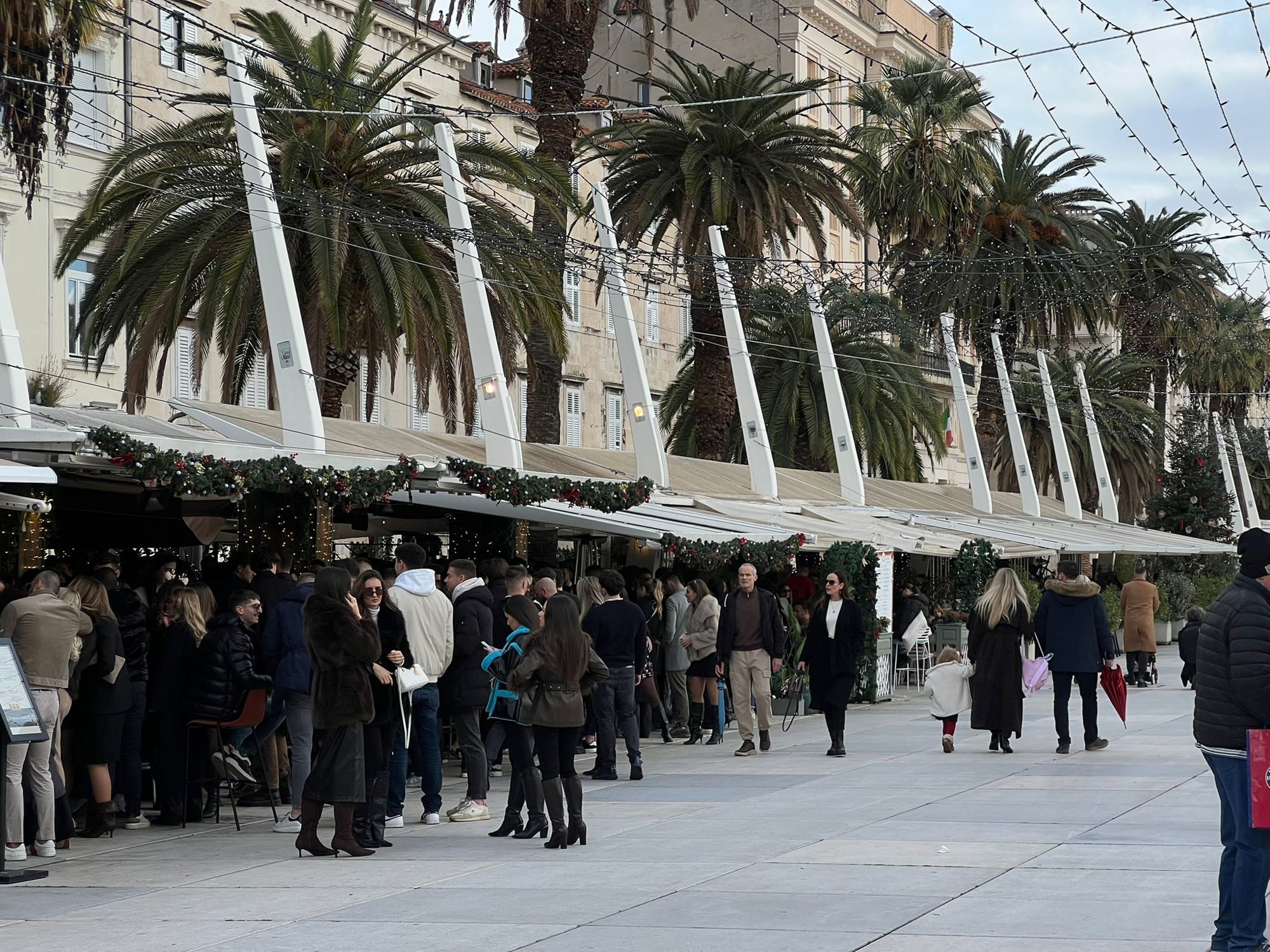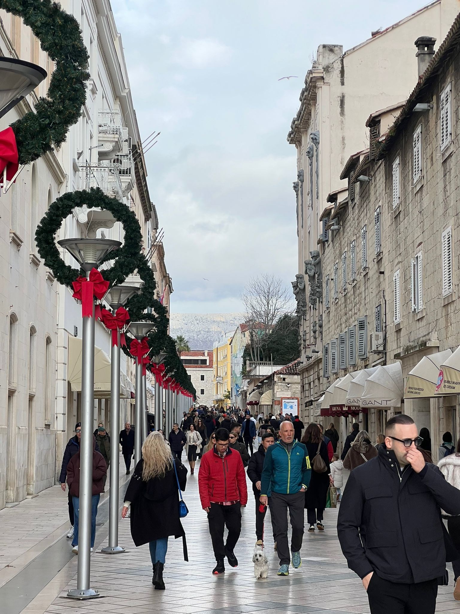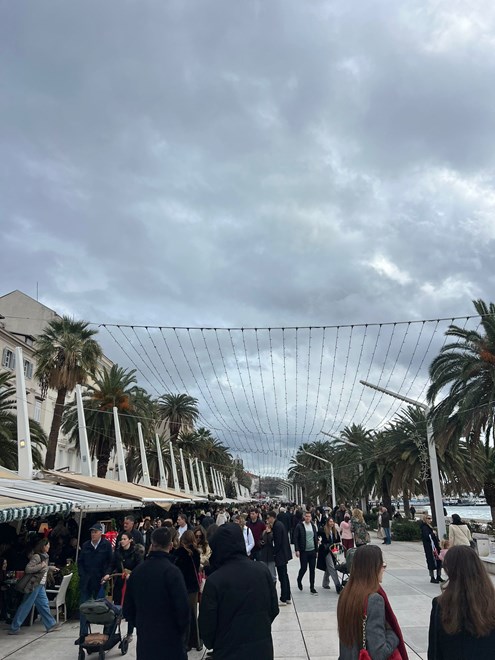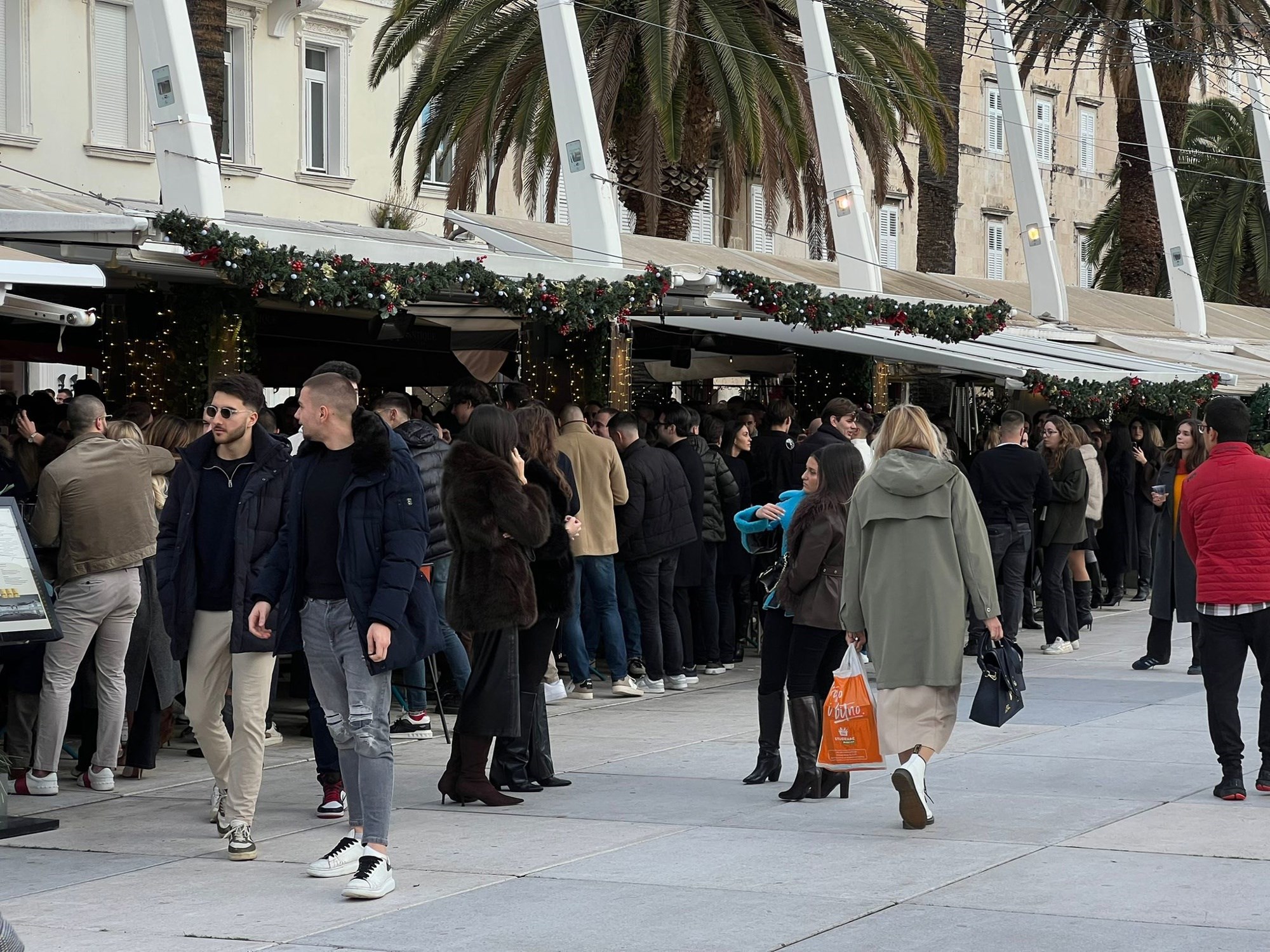Međutim, loša prognoza nije utjecala na blagdansku atmosferu u Splitu, a mnoštvo ljudi preplavilo je centar grada na Badnjak.