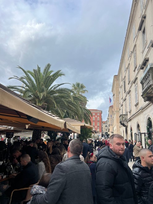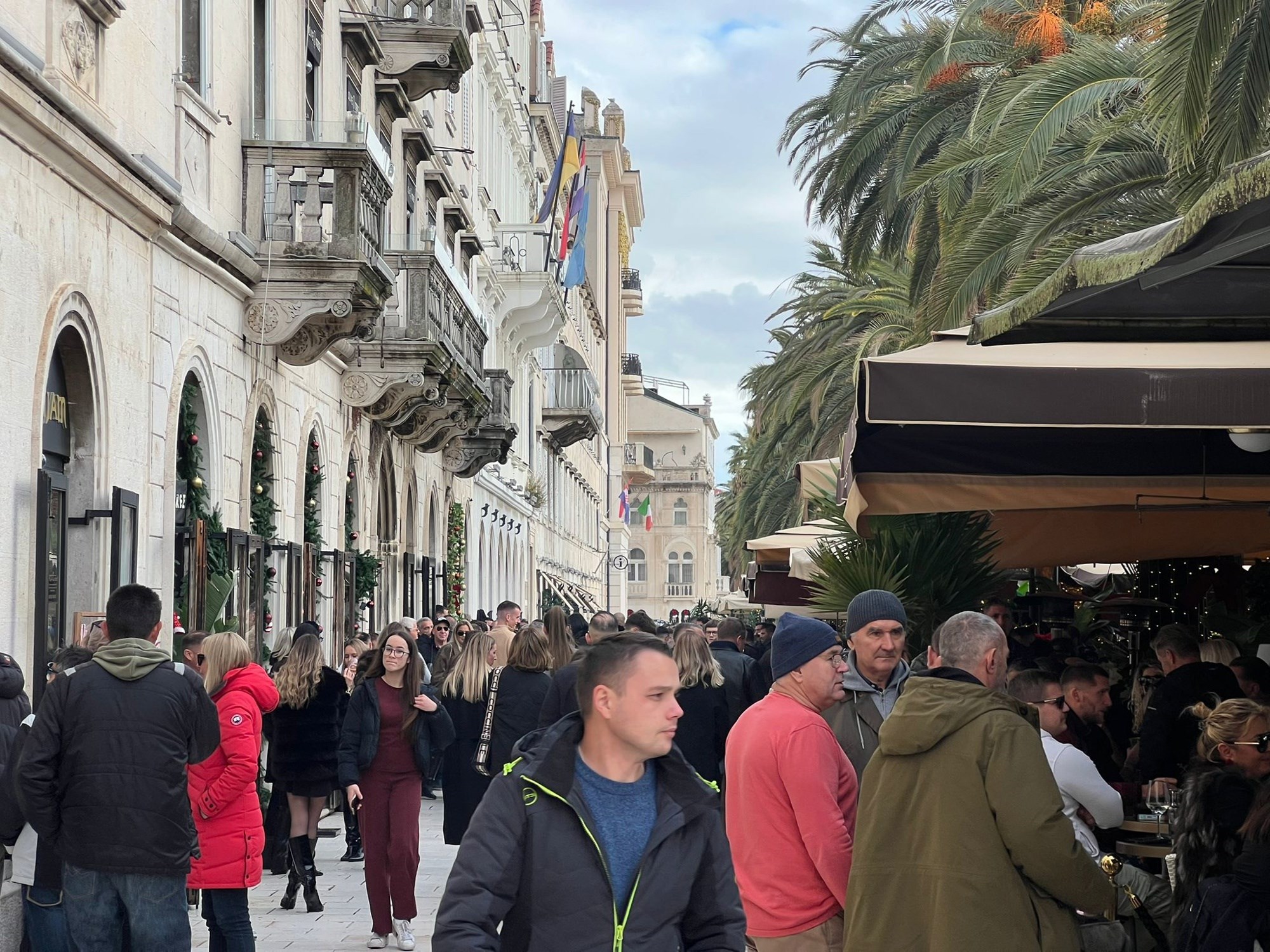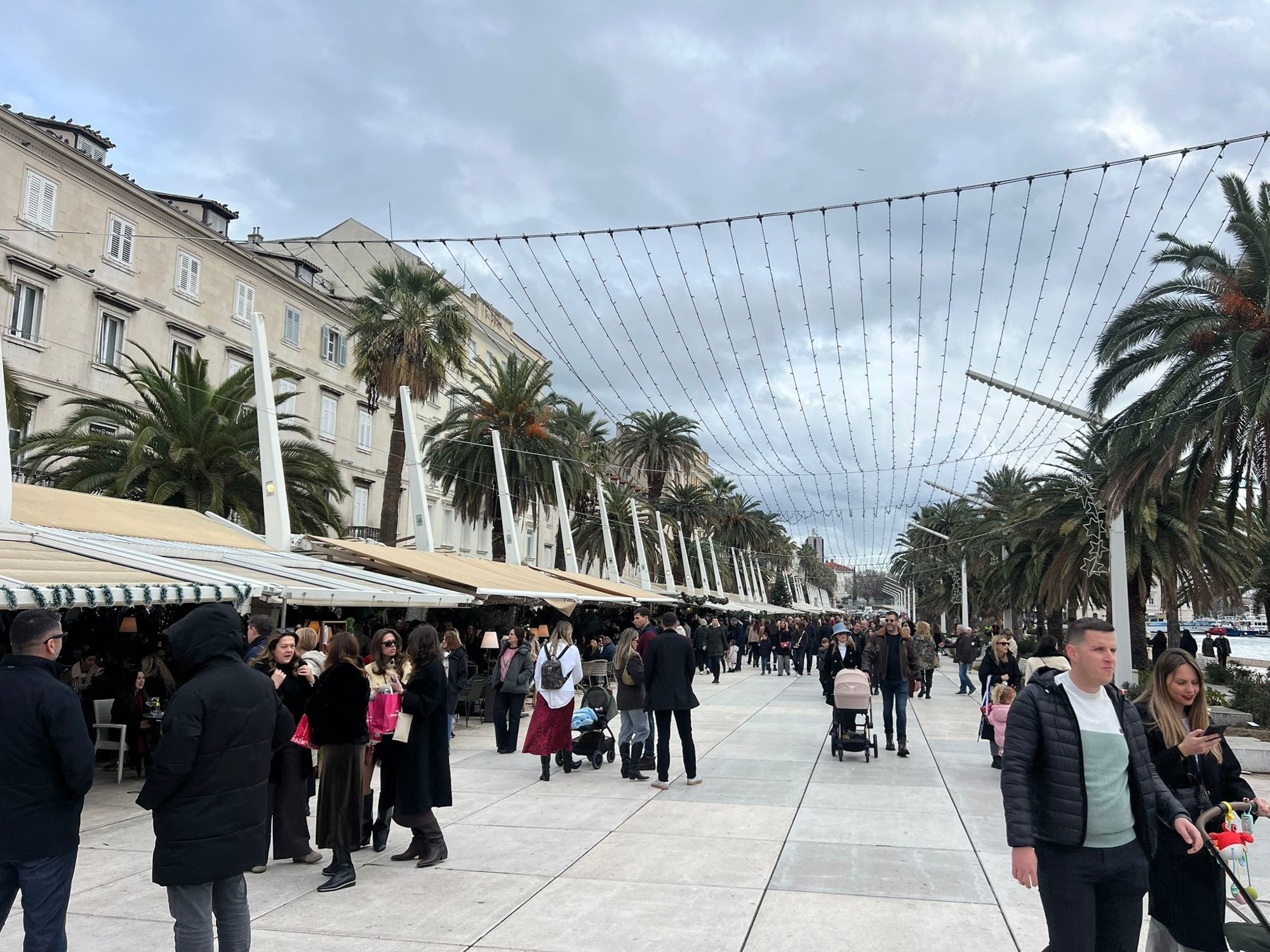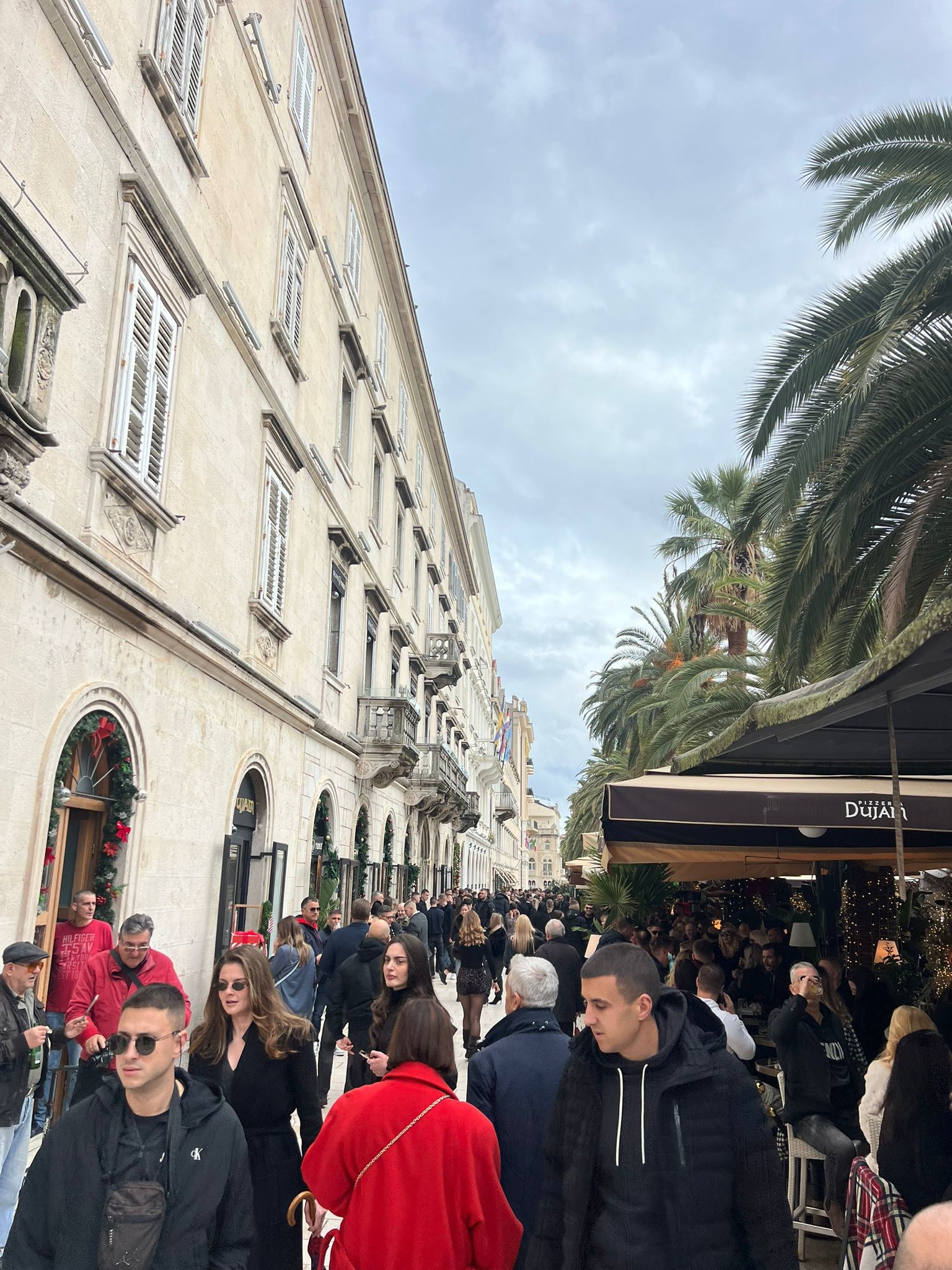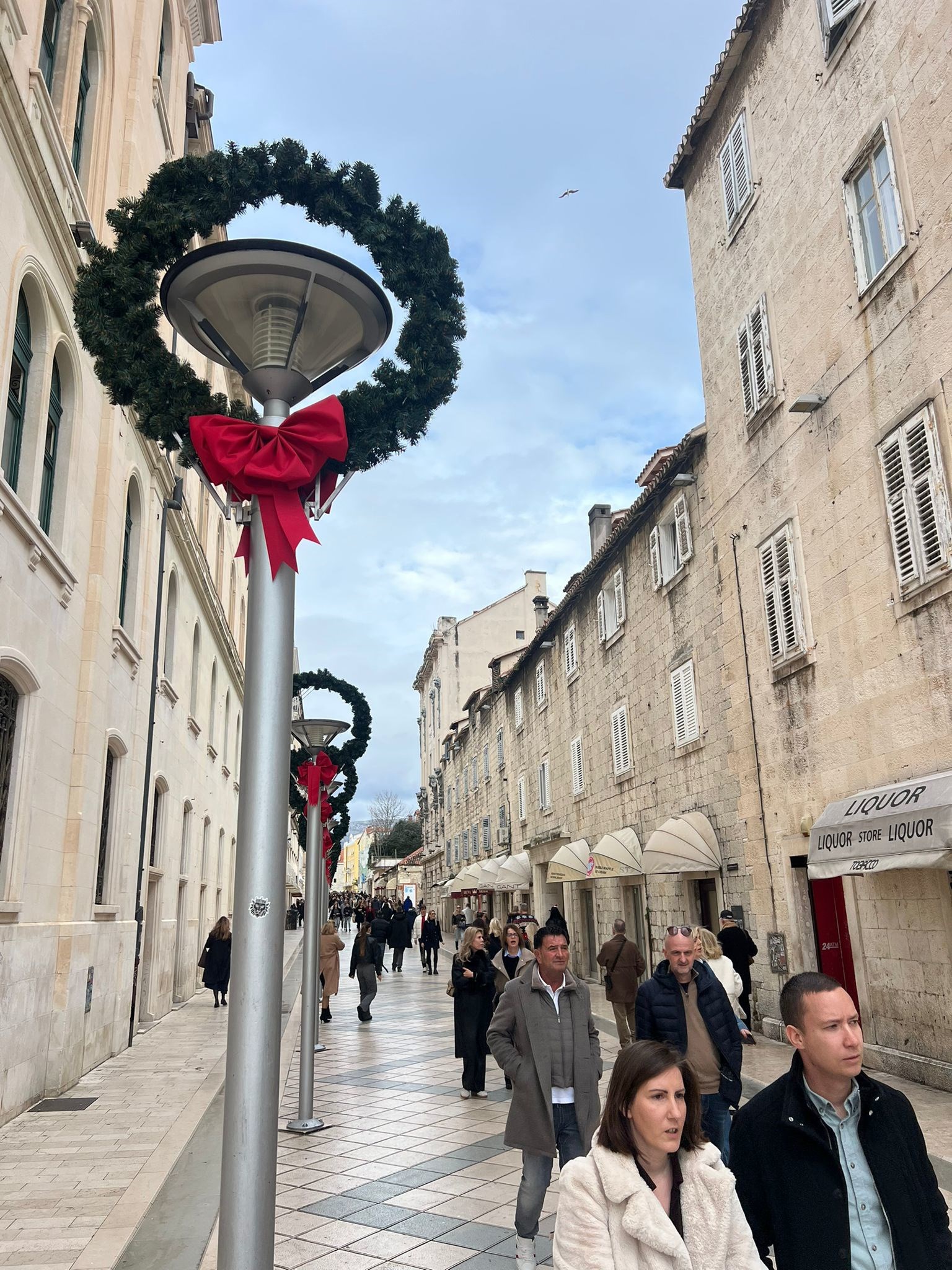 Međutim, loša prognoza nije utjecala na blagdansku atmosferu u Splitu, a mnoštvo ljudi preplavilo je centar grada na Badnjak.