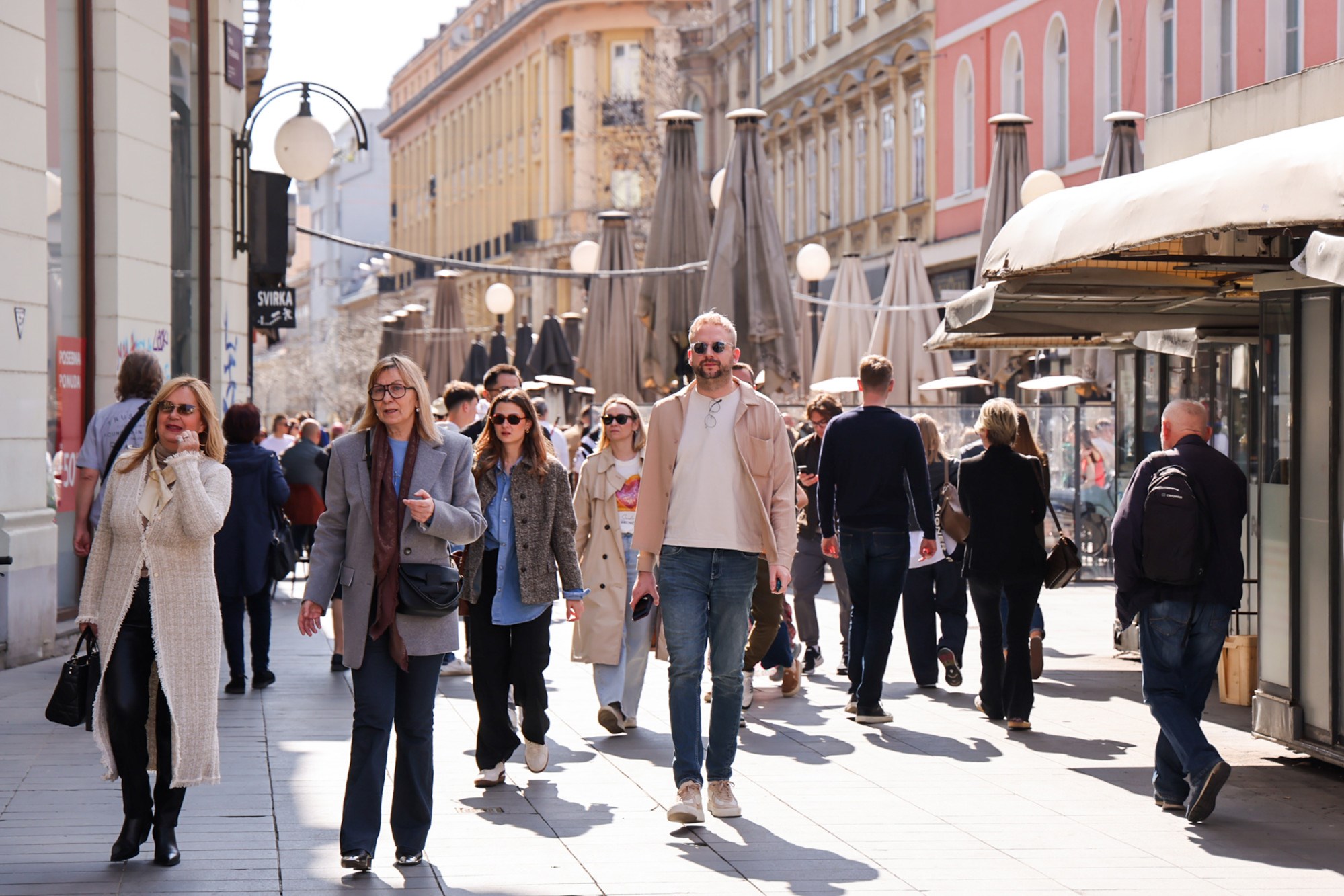 Sunčana subota i ugodne temperature izmamile su brojne Zagrepčane u centar grada, gdje se tražilo mjesto više na terasama i u omiljenim kafićima. Šetnja, druženje i ispijanje kave na suncu bili su idealan način za provesti dan, a gradske su ulice odisale živahnom i opuštenom atmosferom.