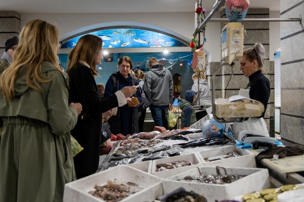 Fotografi Pixsella obišli su i osječku tržnicu, gdje su također zabilježili živu atmosferu. Pred jednom ribarnicom su se mogli vidjeti redovi, a u ponudi je bilo mnogo unaprijed očišćene ribe, što jasno pokazuje što se danas najviše traži.