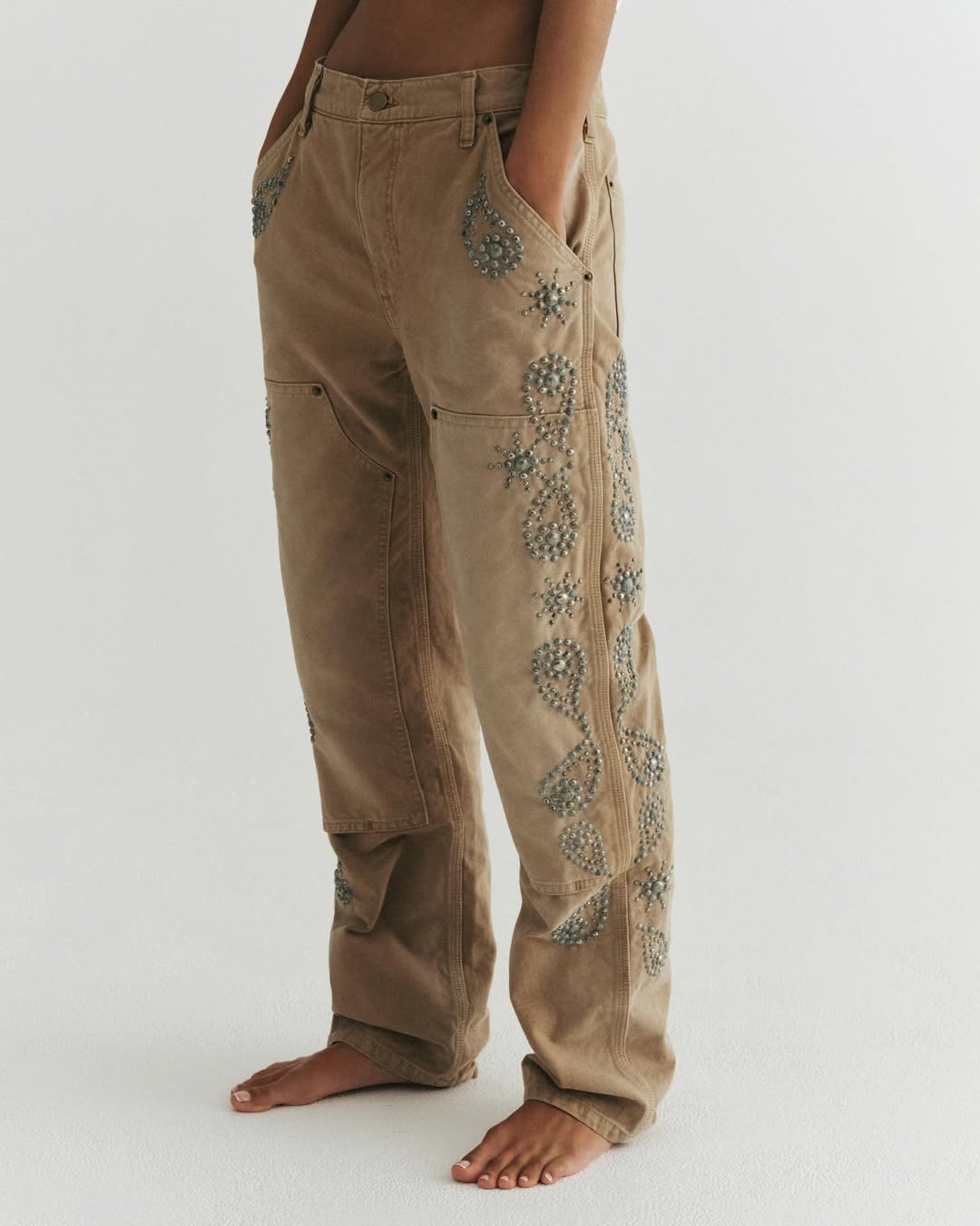 Traper, koji je od početka jedan od najprodavanijih komada brenda, ostaje u fokusu. Jenner i njezine prijateljice influencerice tijekom drugog vikenda Coachelle najavile su traper-asortiman, od kompleta s paisley uzorkom i ukrasima do širokih traperica u različitim ispranim nijansama.