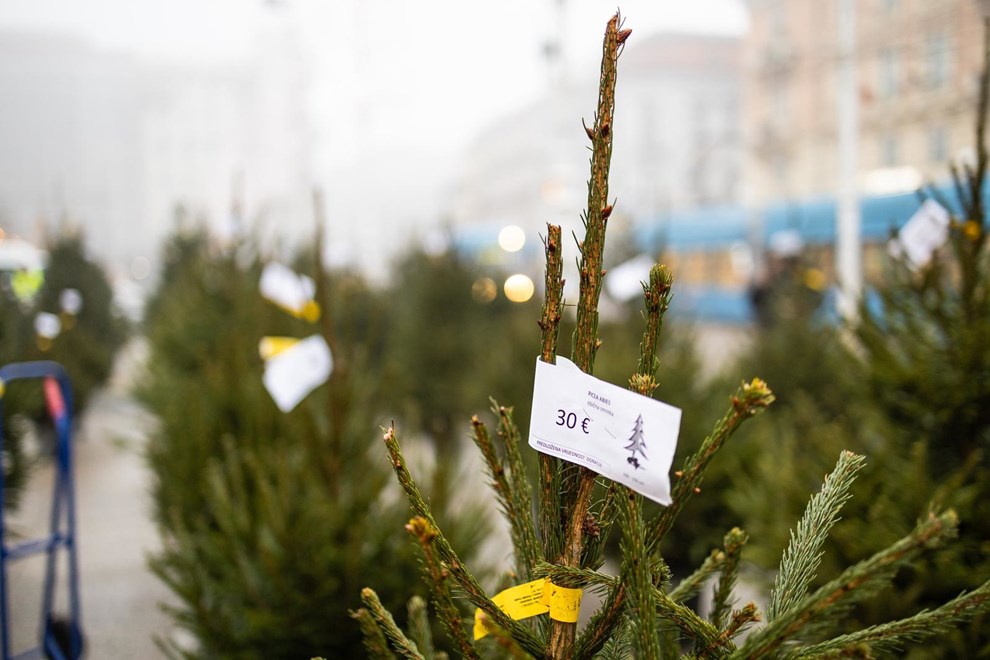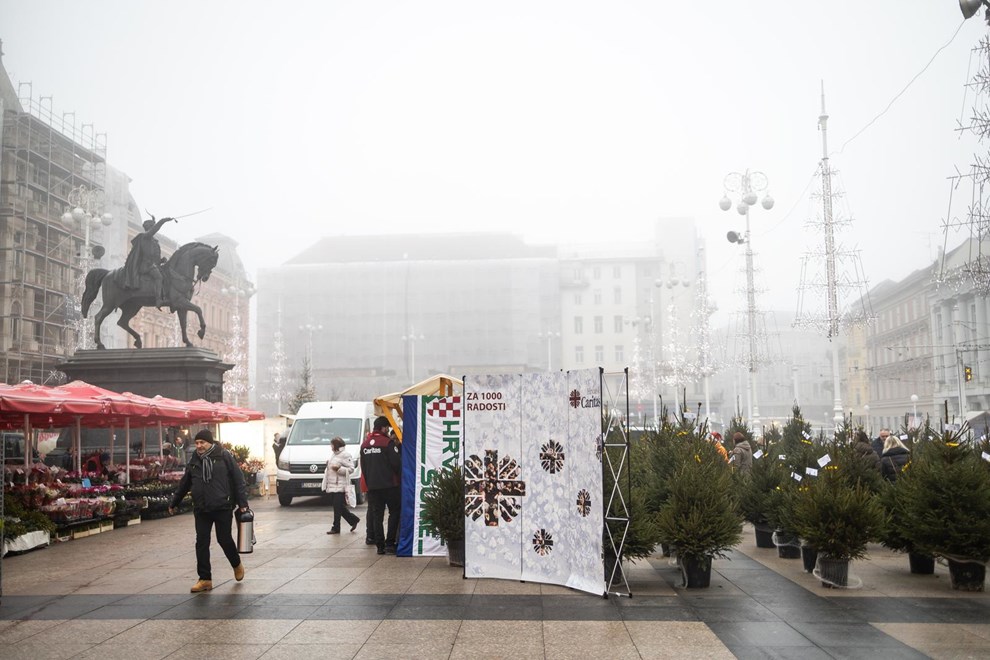 Na Trgu bana Jelačića prodaju se božićna drvca po 30/40 eura (u humanitarne svrhe)