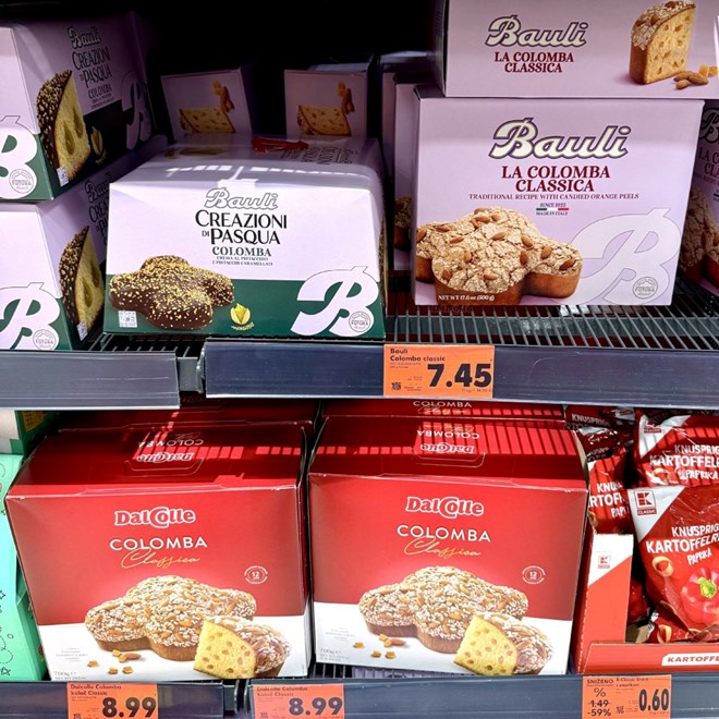 Ako vam je dosta pinci, provjerili smo koliko koštaju i Colombe koje su i u Hrvatskoj sve popularnije za Uskrs. U pitanju je tradicionalni talijanski uskrsni kolač od dizanog tijesta, sličan panettoneu, koji se peče u kalupu u obliku golubice. Prepoznatljiva je po mekanoj unutrašnjosti, kandiranoj naranči i hrskavoj glazuri od badema i šećera na vrhu.