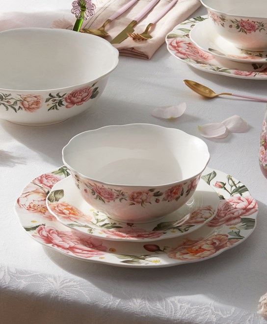 Kolekcija je izrazito romantična i oslanja se na nježne, pastelne tonove te cvjetne motive koji se provlače kroz većinu komada. Dominiraju ružičasta, zelena i bijela, a detalji poput posuđa, tekstila i manjih dekoracija lako se uklapaju u različite prostorije.