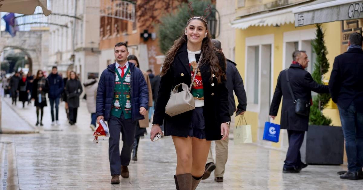 Posebno su se istaknule i zanimljive veste s božićnim motivima - one koje se inače nose za kućne tulume ili obiteljska okupljanja, na zadarskim su ulicama postale pravi street style komad. Uparene s kaputima, suknjama ili čizmama, savršeno su se uklopile u zimski gradski ritam i pokazale da se i "tematski" komadi mogu nositi stylish.