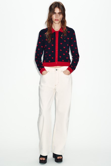 Izdvajaju se tamnoplavi kardigan s crvenim obrubom i motivima srca (25.95 eura) te poluprozirni dolčevita-topovi s crvenim srcima, dostupni u ružičastoj (22.95 eura) i tamnoplavoj nijansi (22.95 eura). Ponudu dodataka čine sandale s platformom (49.95 eura), kao i razne torbice u crvenoj boji ili s motivima srca.