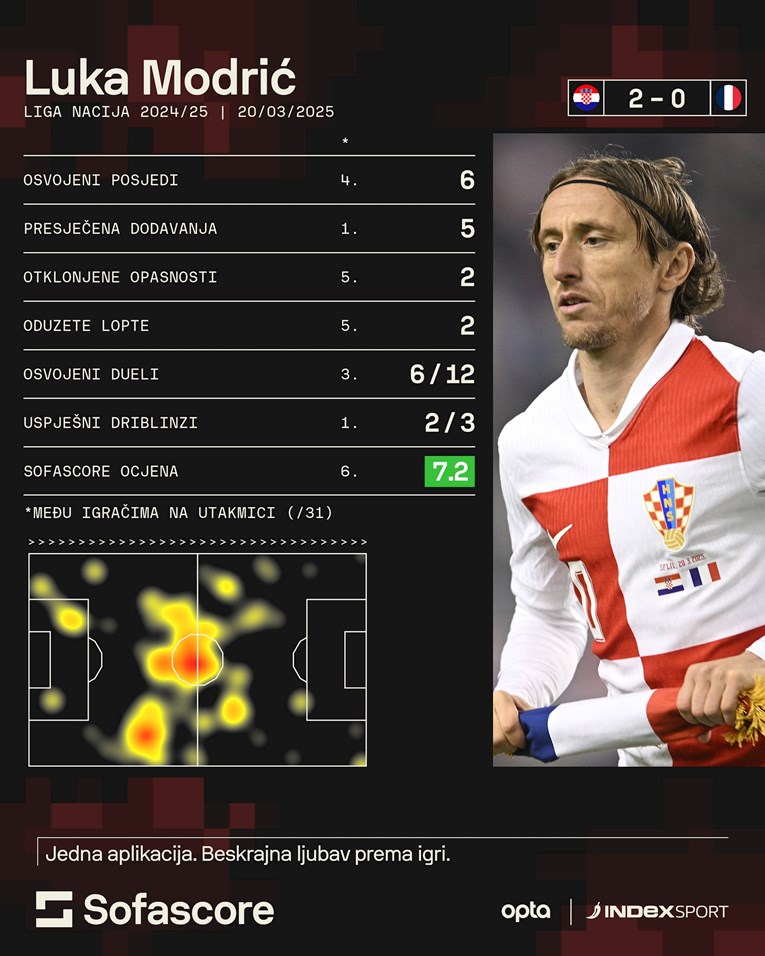 HRVATSKA reprezentacija pobijedila je Francusku 2:0 u prvoj četvrtfinalnoj utakmici Lige nacija. S tom prednošću će momčad Zlatka Dalića u nedjelju od 20:45 krenuti u uzvratnu utakmicu u Parizu i pokušati izboriti Final Four natjecanja. Društvene mreže ističu dobru igru Luke Modrića.