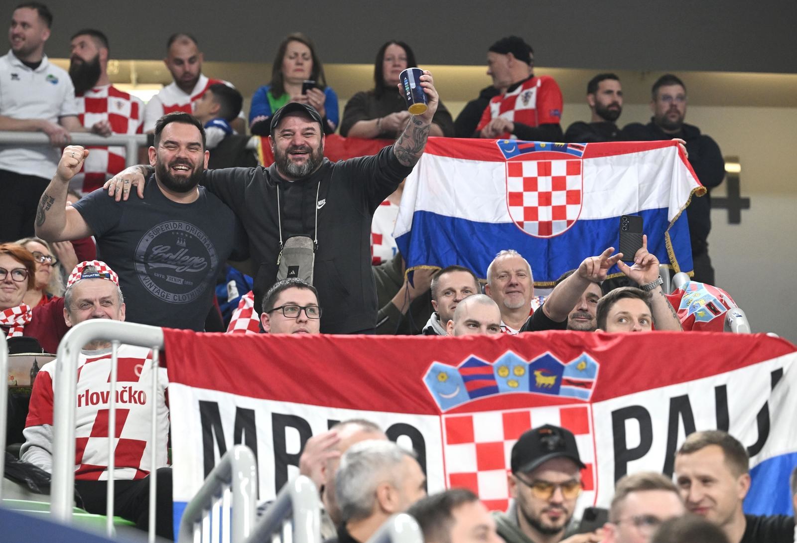 Činjenicu da se igra u susjednoj Sloveniji iskoristili su brojni hrvatski navijači, koji su u velikom broju kupili ulaznice za polufinale i došli podržati izabranike Marinka Mavrovića. Tribinama dominiraju hrvatske zastave, a cijelo vrijeme čuje se i glasno navijanje hrvatskih navijača.