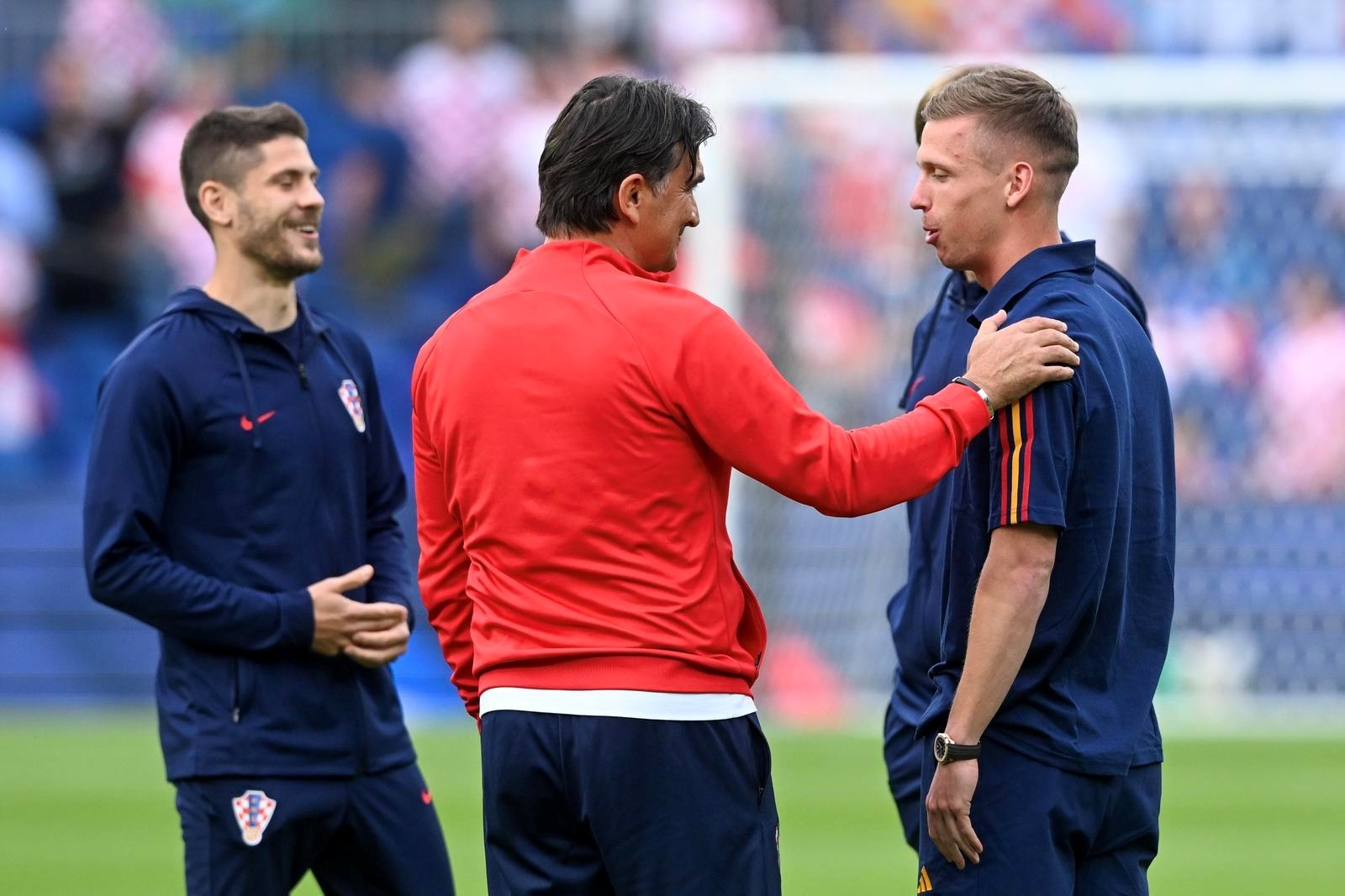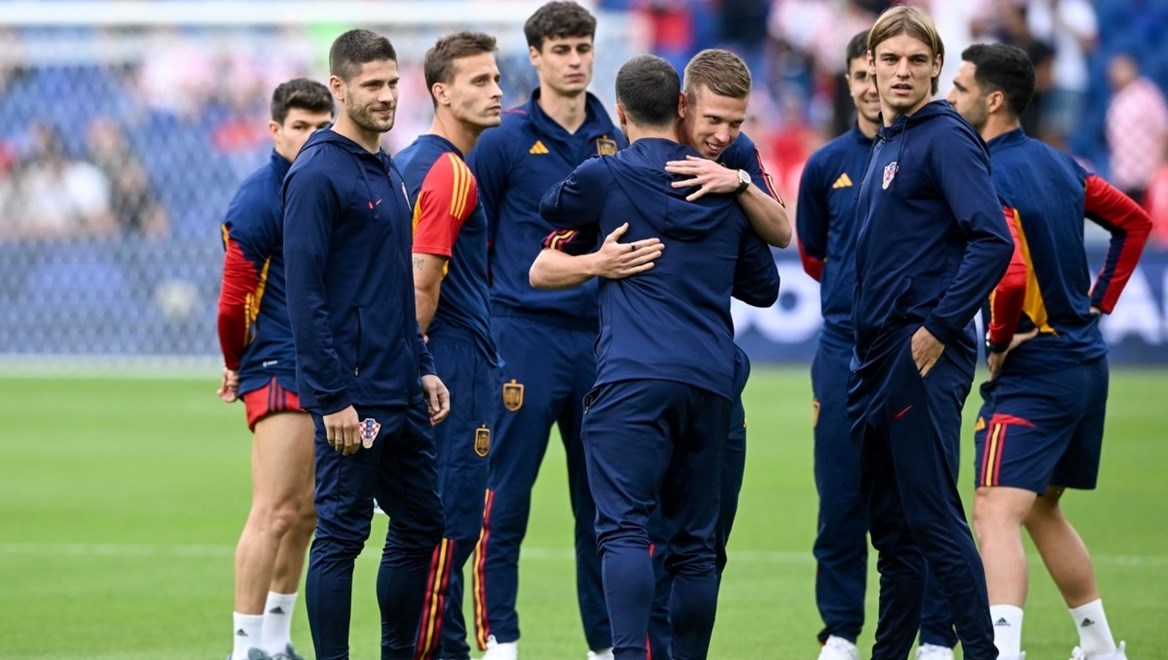Pred početak utakmice bivši igrač Dinama i španjolski reprezentativac Dani Olmo se pozdravio i izgrlio s Dalićem i hrvatskim igračima, a Mario Mandžukić s reprezentativcima Španjolske.
