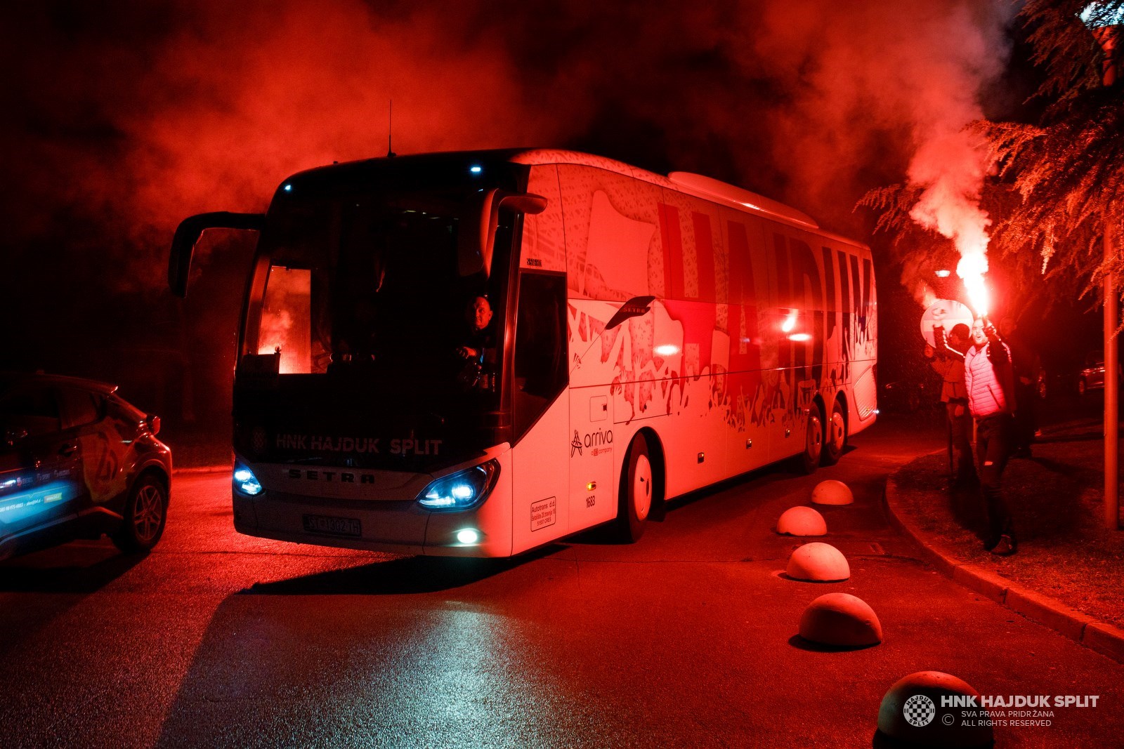 "Bijeli su stigli u Novigrad. Kao i uvijek, Hajduk je fantastično dočekan u ovom kraju, osjetili su to igrači zajedno sa stručnim stožerom i večeras, kada ih je stotinjak istarskih navijača dočekalo bakljadom i pjesmom. Ne nedostaje Bijelima ljubavi i podrške, Hajduk se živi u svakom kutku Hrvatske..."