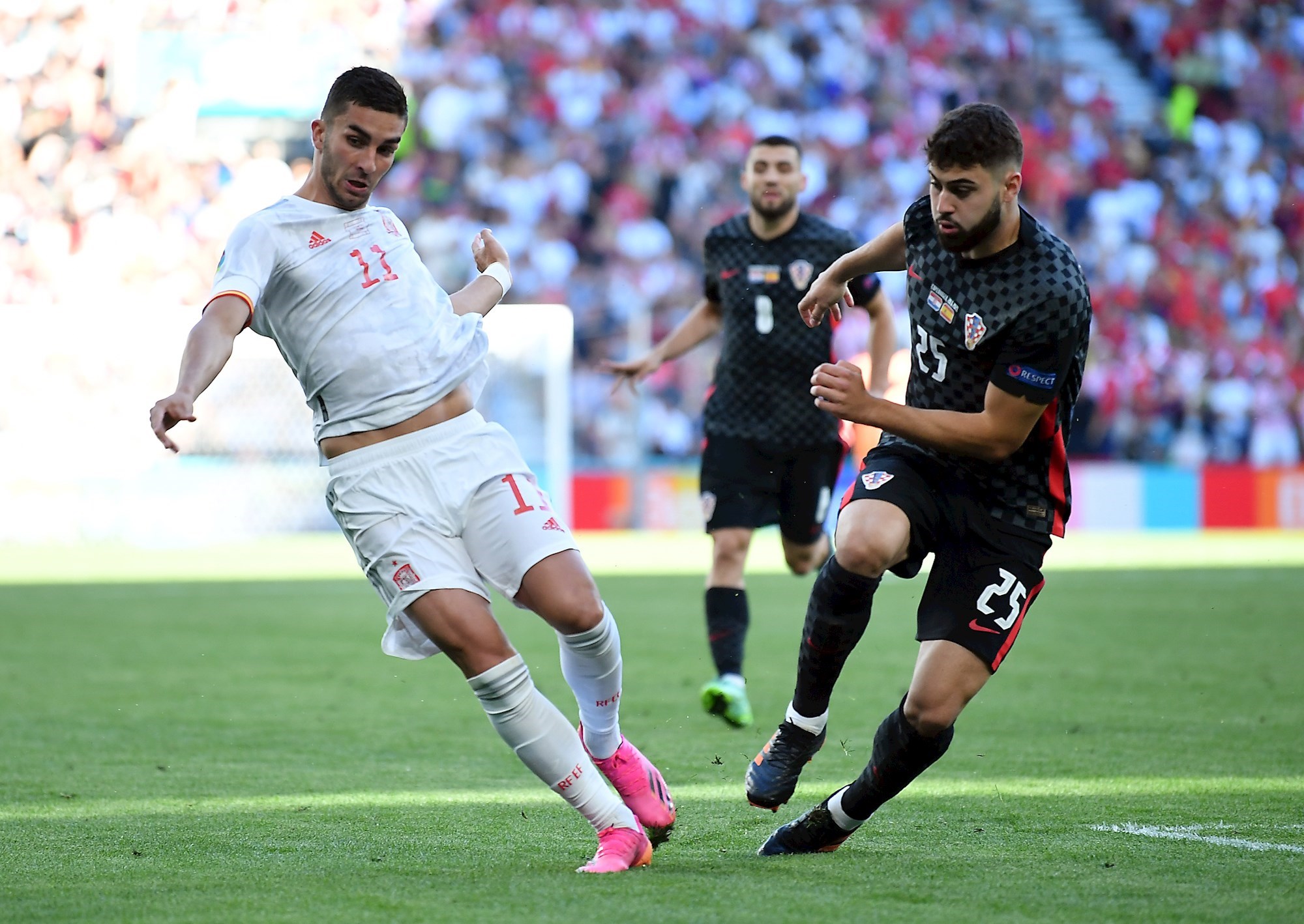 Furija je na uvodu priče u Kopenhagenu imala čak 87 posto loptu u nogama te je stalno vršila strahovit pritisak na zadnju liniju Hrvatske. Nakon nekoliko polušansi, Koke je u 15 minuti izašao sam ispred Livakovića. Mogao ga je pitati gdje želi pucati, ali je pogodio vratara Hrvatske. Pet minuta kasnije Morata je imao zicer glavom, ali je pogodio Vidu u ruku. Sudac Cakir je procijenio da nije bilo namjere.