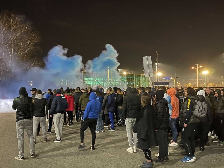 Nakon utakmice uslijedilo je veliko slavlje na ulicama Zagreba. Čuju se pjesme, topovski udari, pale se baklje...