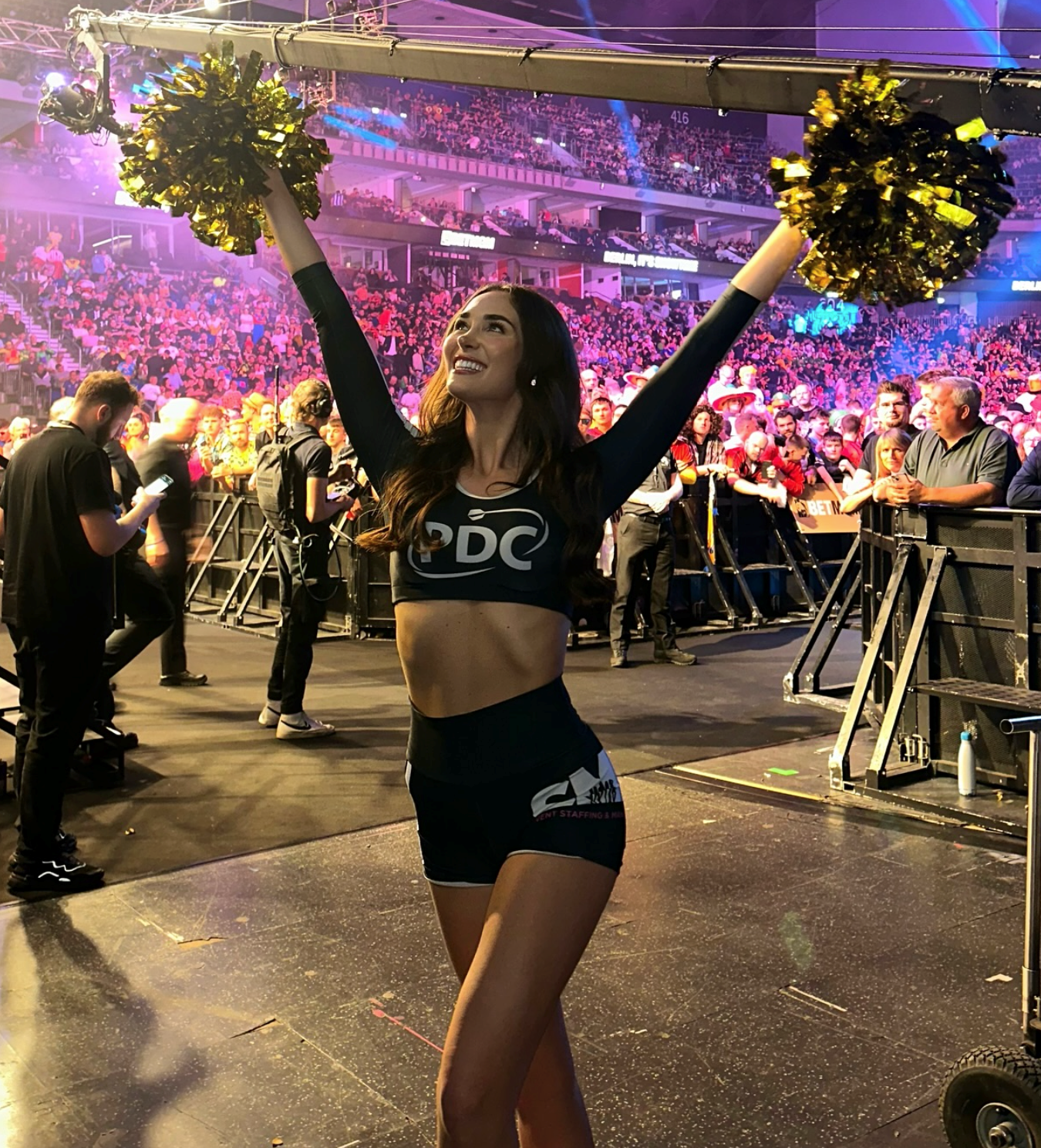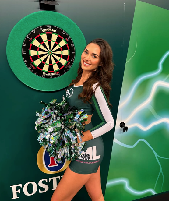 DOK SU SVE oči uprte u Lukea Littlera i ostale zvijezde Svjetskog prvenstva u pikadu, pozornost u Alexandra Palaceu privlače i glamurozne plesačice. Među njima se našlo i jedno lice poznato ljubiteljima reality showova - Lacey Edwards, bivša natjecateljica popularnog "Love Islanda".